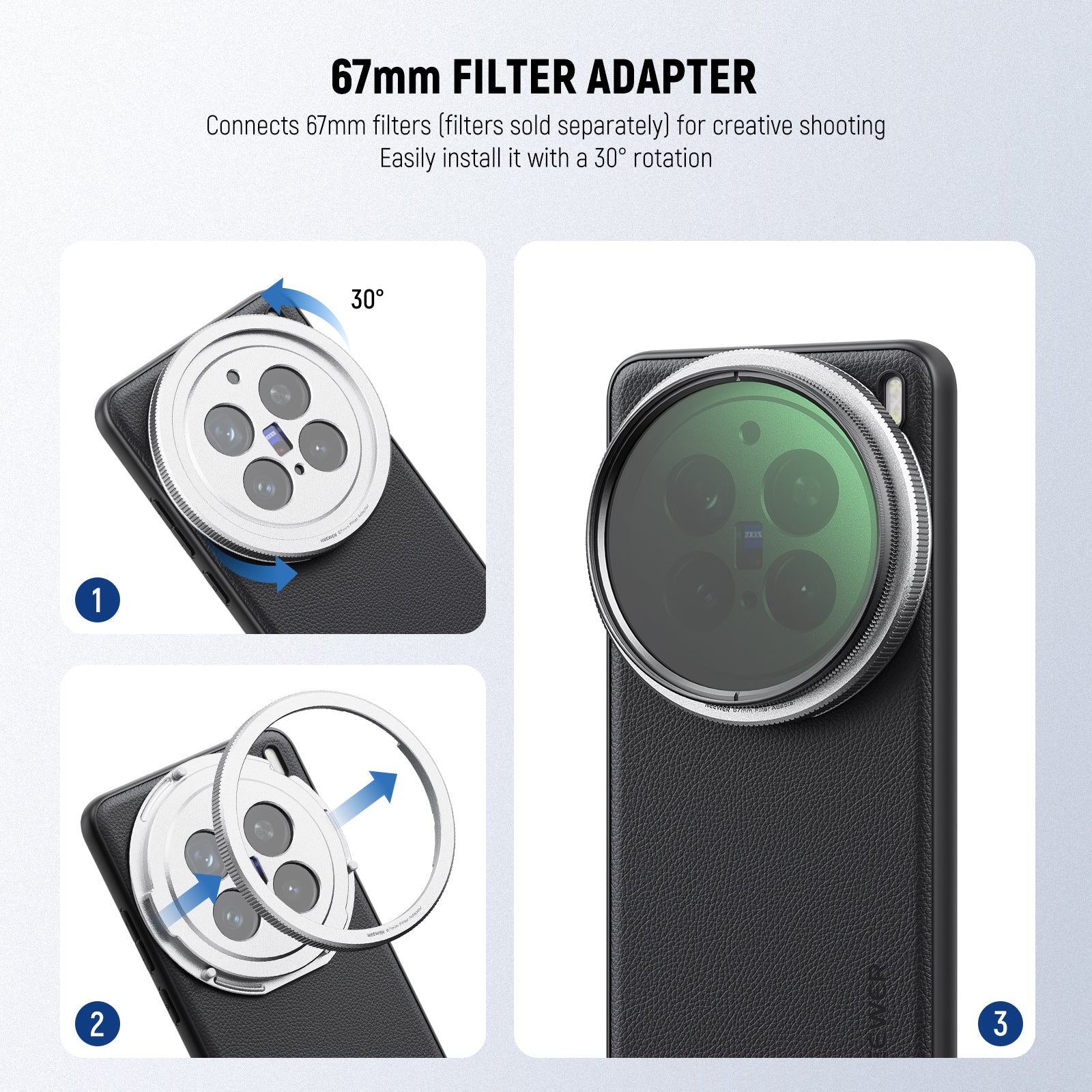 - Snap On 67mm Filter Adapter- Snap on the 67mm filter adapter and attach ND, CPL, diffusion, light pollution, and gradient filters for creative shots (filters sold separately)
