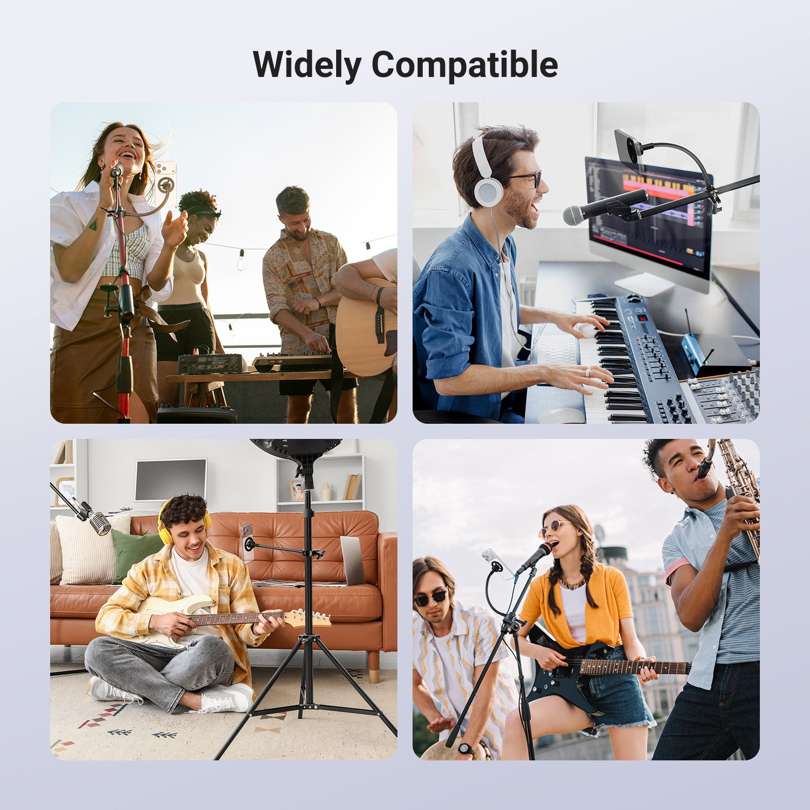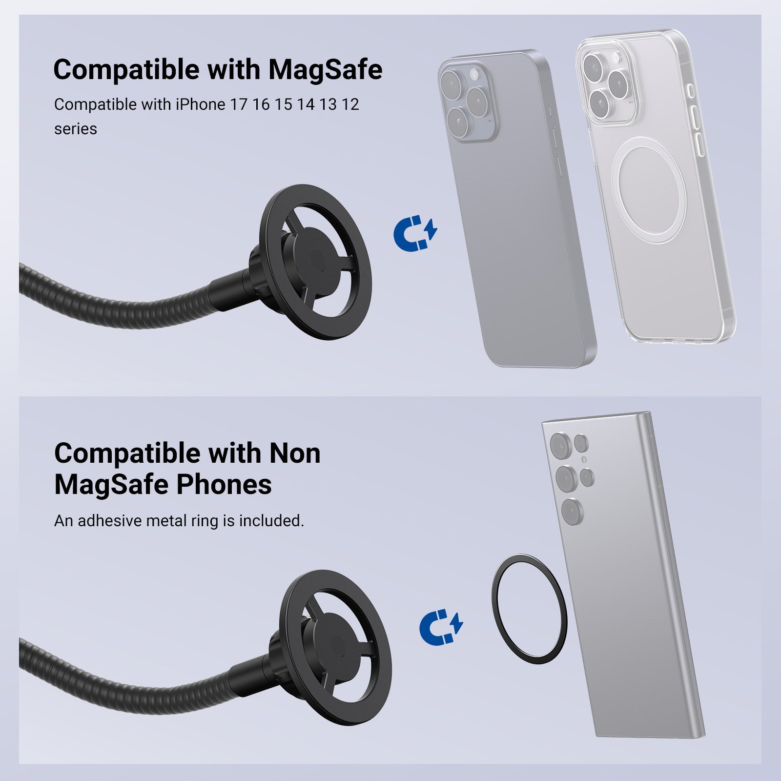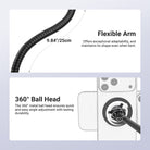 - Flexible & Smooth Adjustment- The 7.9" (20 cm) flexible boom pole arm offers exceptional adaptability, maintaining its shape even when bent, with a 360° rotatable ball head on the top, ensuring your phone stays securely at any desired angle or height. Whether for speeches, meetings, karaoke, on stage singing, band performances, studio recording, or live streams and online classes, the clip phone stand holder is always within reach