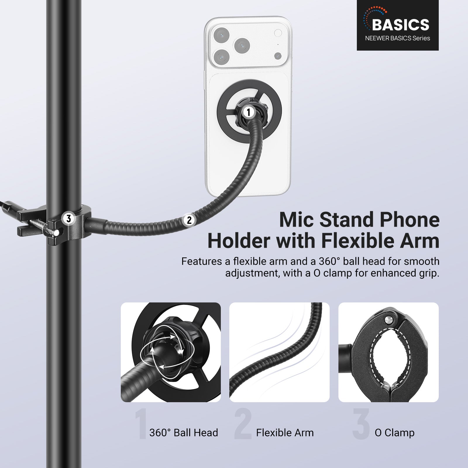 NEEWER BASICS MS009 Mic Stand Phone Holder with Flexible Arm