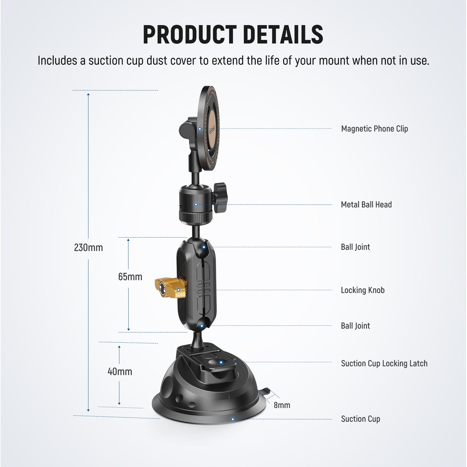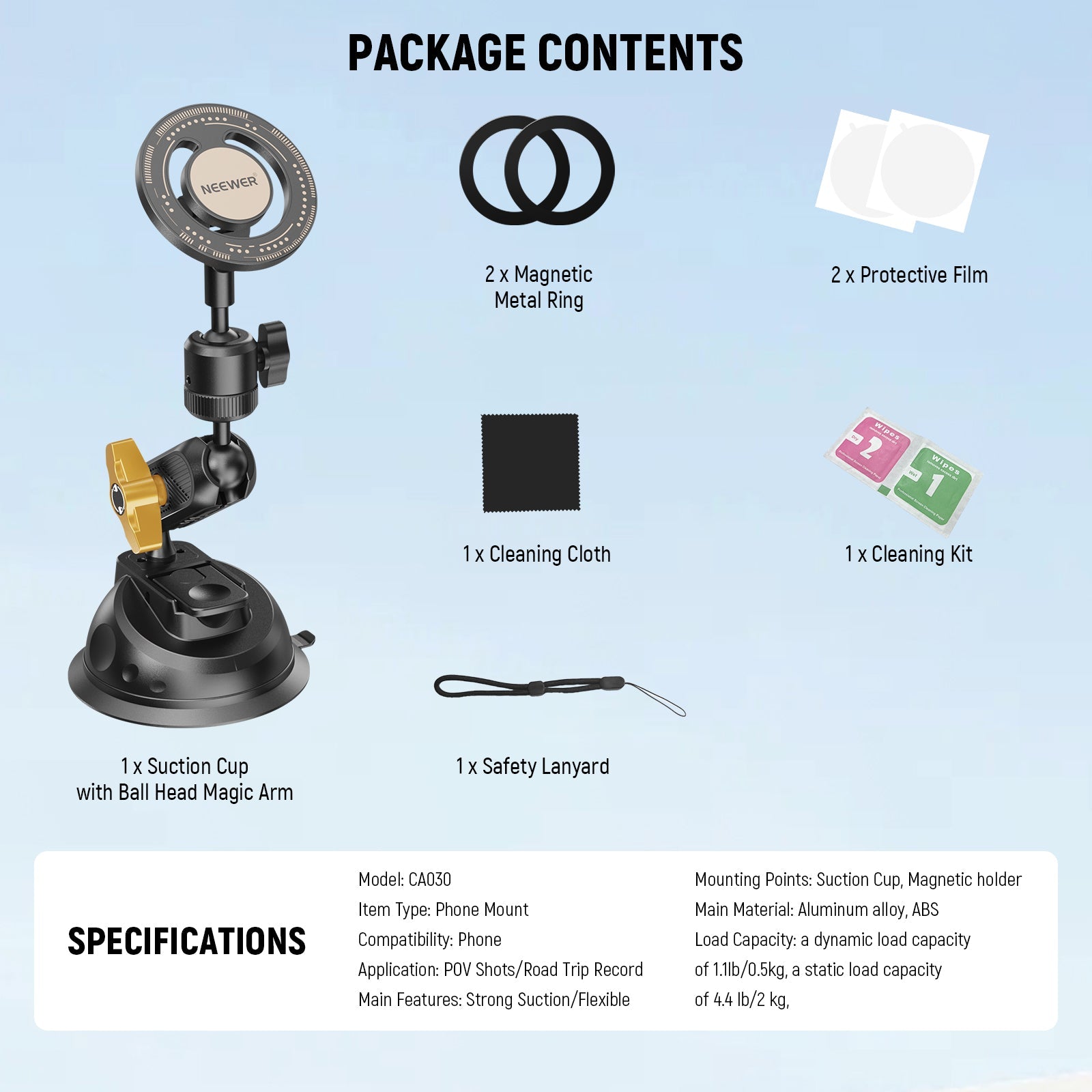 NEEWER CA030 Suction Cup Mount with Magnetic Phone Holder for Phones