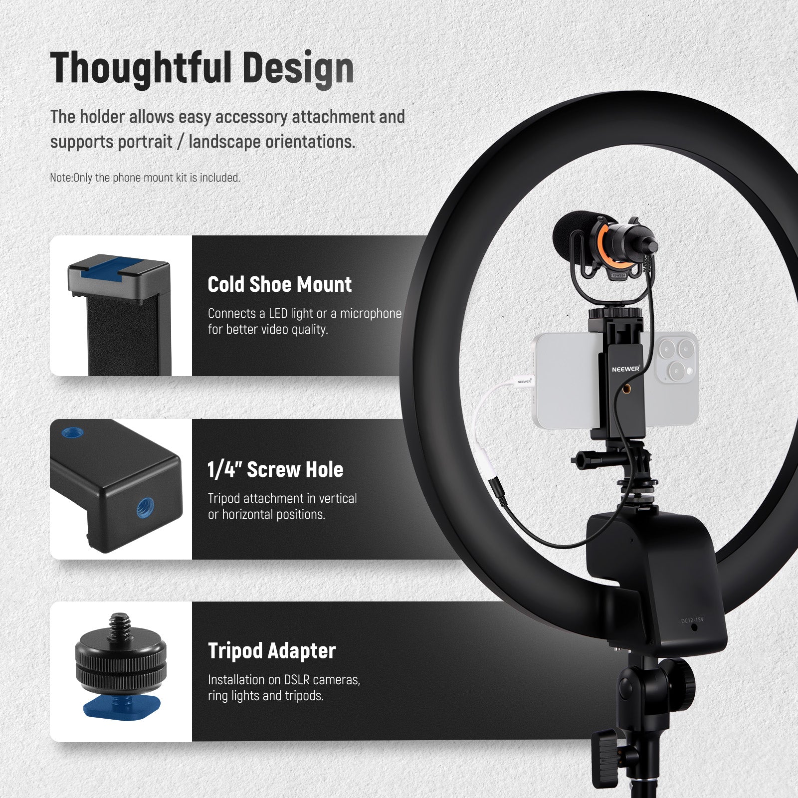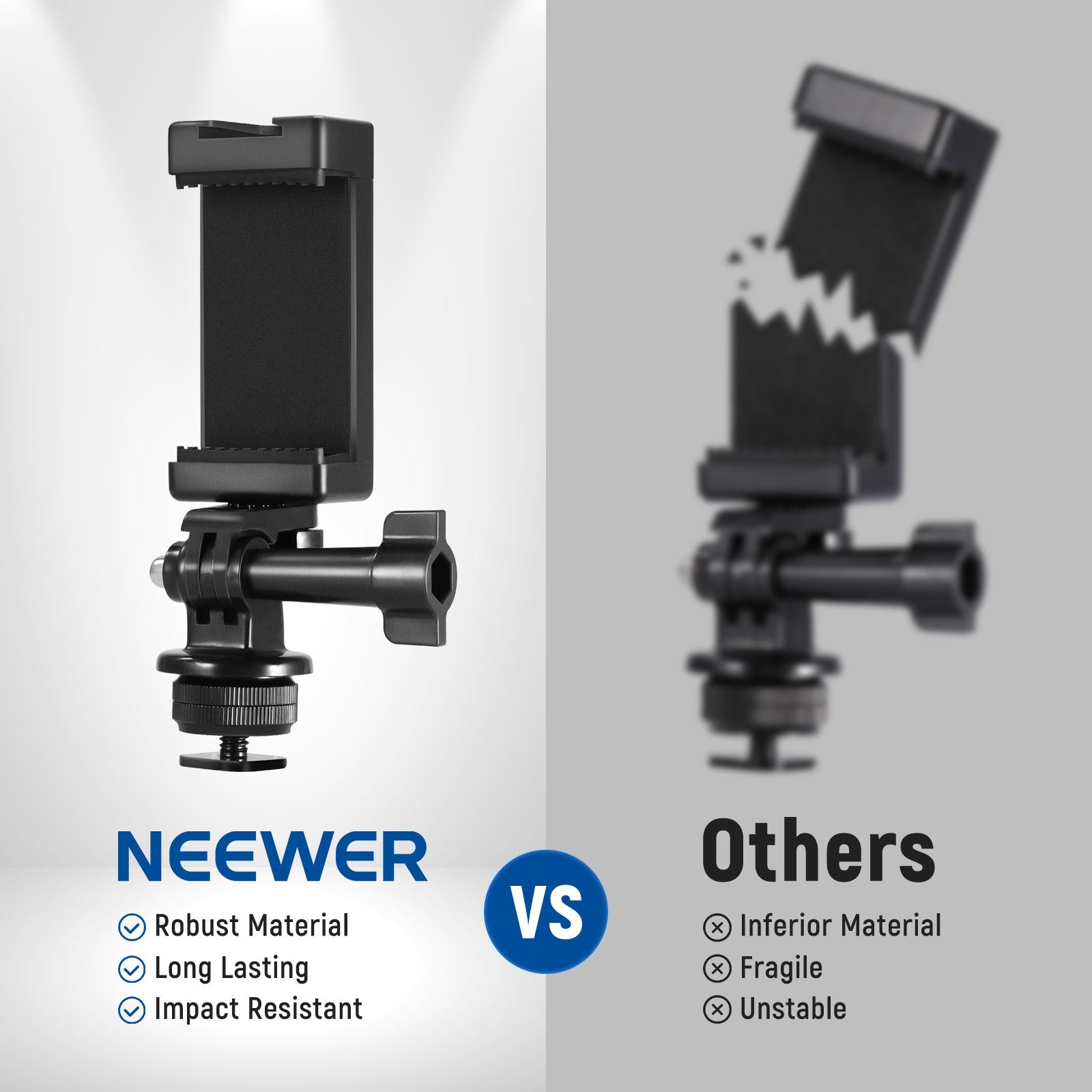 NEEWER 3-in-1 Phone Holder with Cold Shoe & Action Camera Adapter