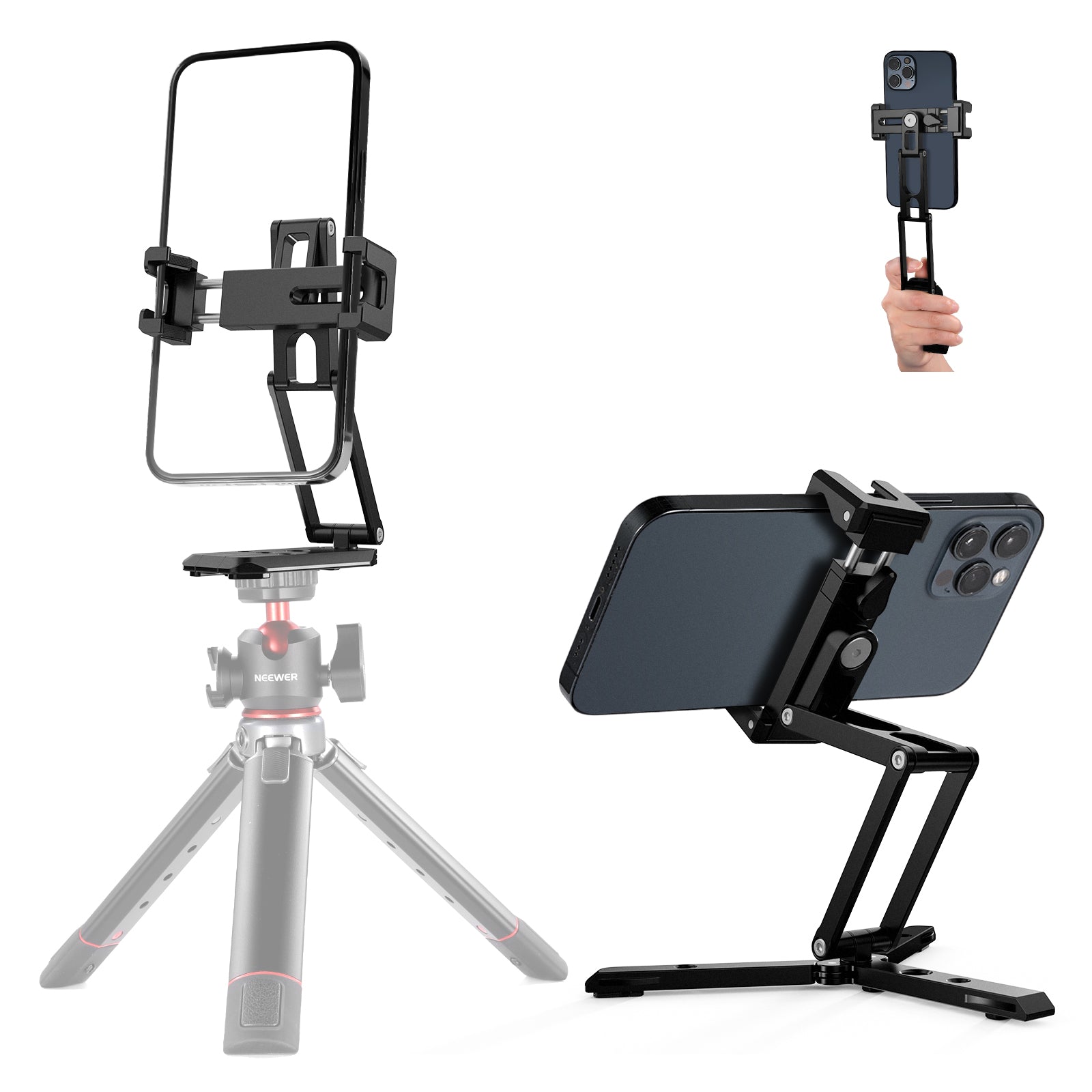 • Diverse Mounting Options- Fold the three split legs into an Arca quick release plate for quick and easy attachment to any tripod head with the identical mounting system, and also come with multiple bottom screw holes (3 x 1/4" and 1 x 3/8") to install on tripods, monopods, gimbals and other systems. The phone clip with two cold shoes to mount LED lights, ring lights, microphones, and more