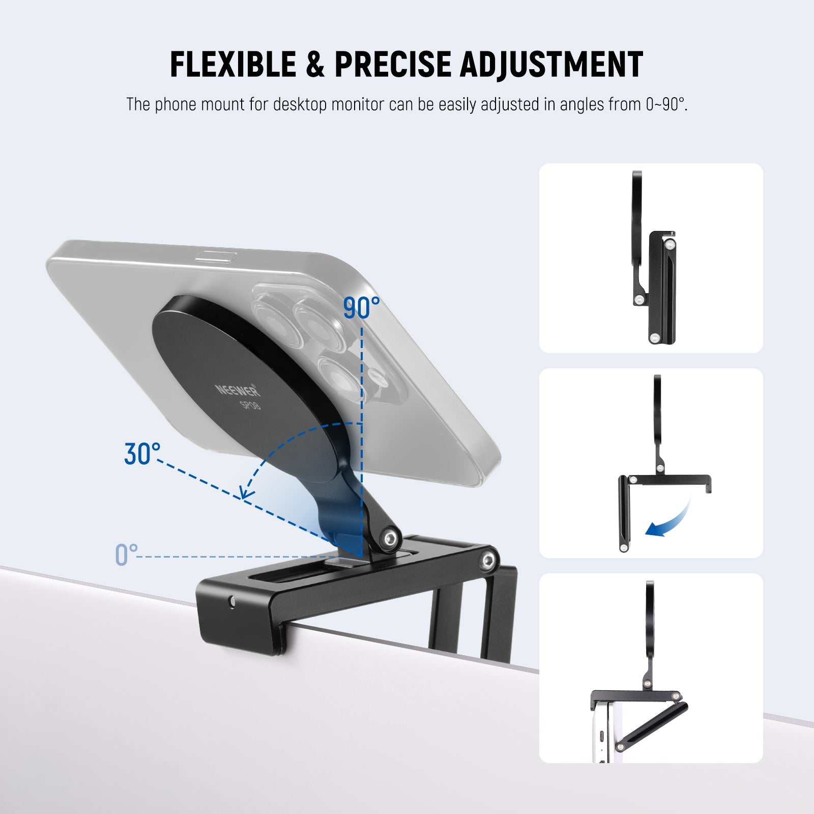 - Phone Camera Mount for Desktop Monitor- Use this continuity camera mount to attach your smartphone to the desktop display, monitor, laptop, or TV, versatile as a webcam mount compatible with Magsafe iPhone series compatible with Andriod smartphones compatible with Mac desktops and laptops compatible with iMac all in one computers compatible with Apple TV 4K and other screens, ideal for FaceTime, video conferencing, live streaming, and other content creation