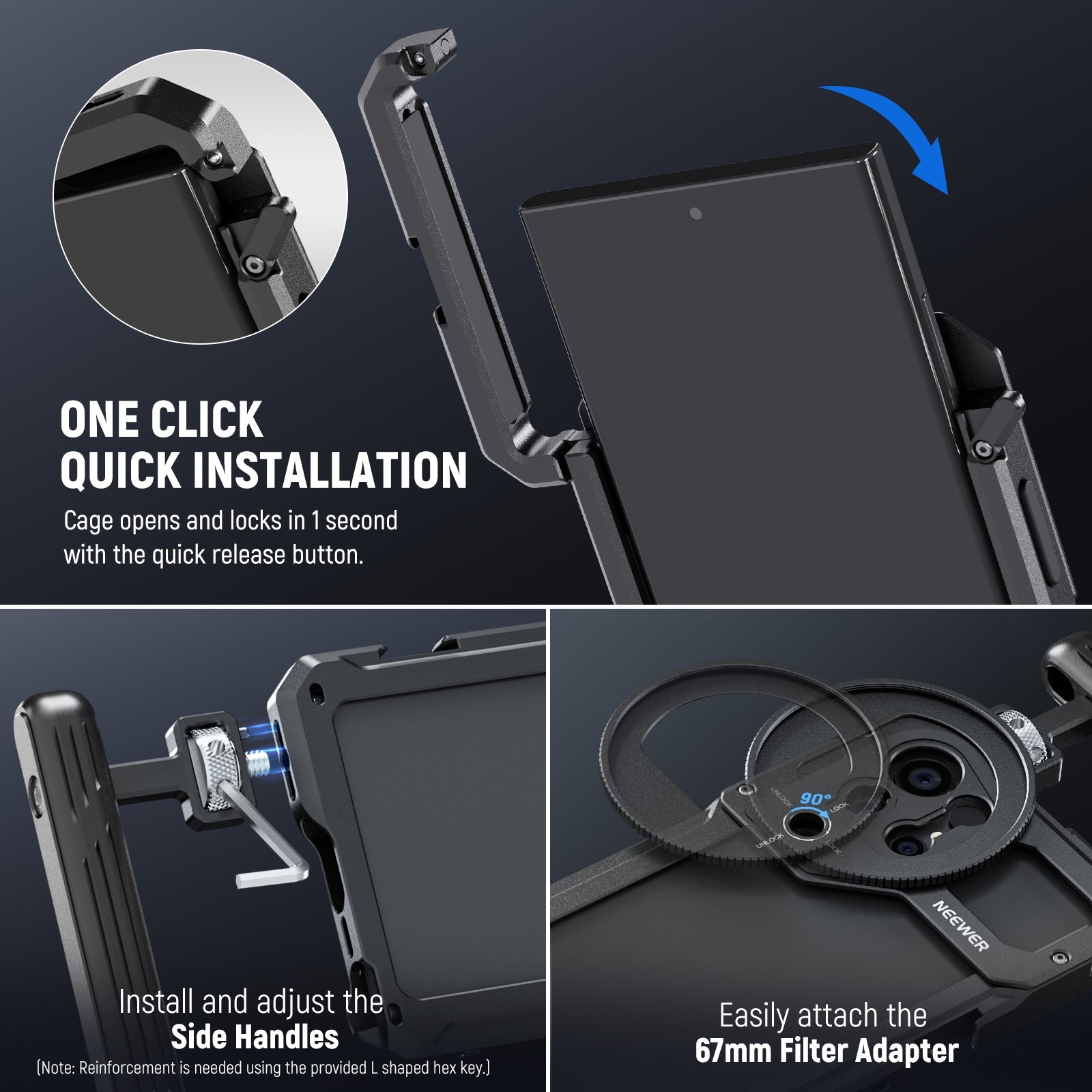 NEEWER PA021 Handheld Cage with Filter Thread Adapter For SAMSUNG S23 Ultra