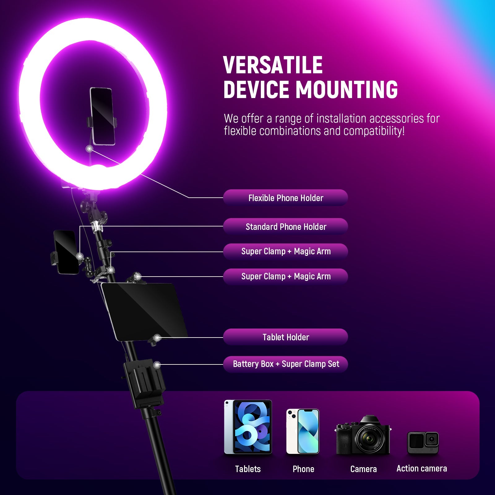 - Expand Possibilities- The cage offers multiple 1/4'' screw holes and cold shoe mounts for accessories like LED lights, wireless microphones, and mini tripods. It supports both horizontal and vertical shooting, making it ideal for YouTube/TikTok content creation, vlogging, live streaming, photography, and videography.