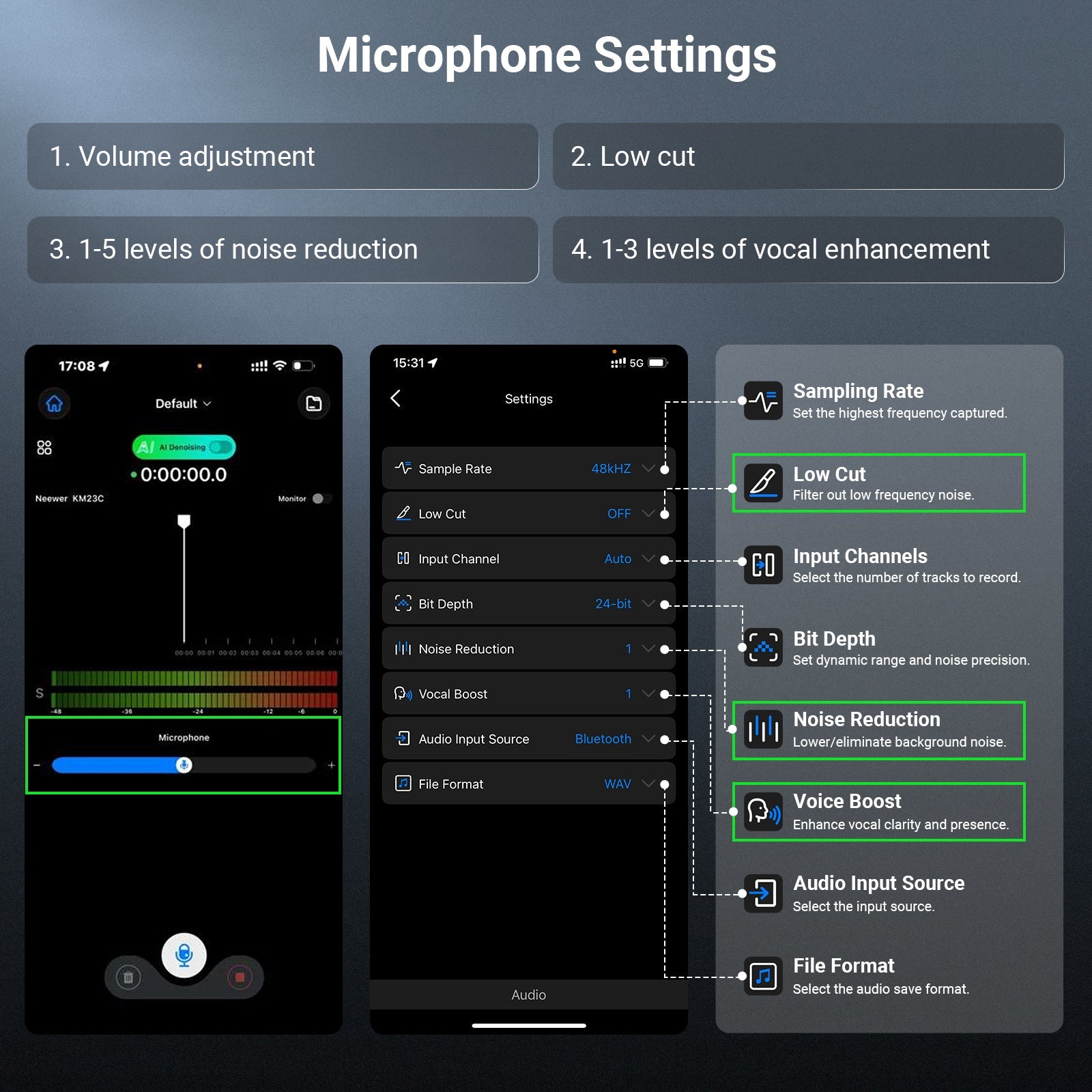 • Clear AI Noise Cancellation- AI noise cancellation automatically identifies noise in a mixed audio signal and removes or masks it, while boosting vocals for a clearer, fuller, and purer output. Furry windshields eliminate wind noises in outdoor recording