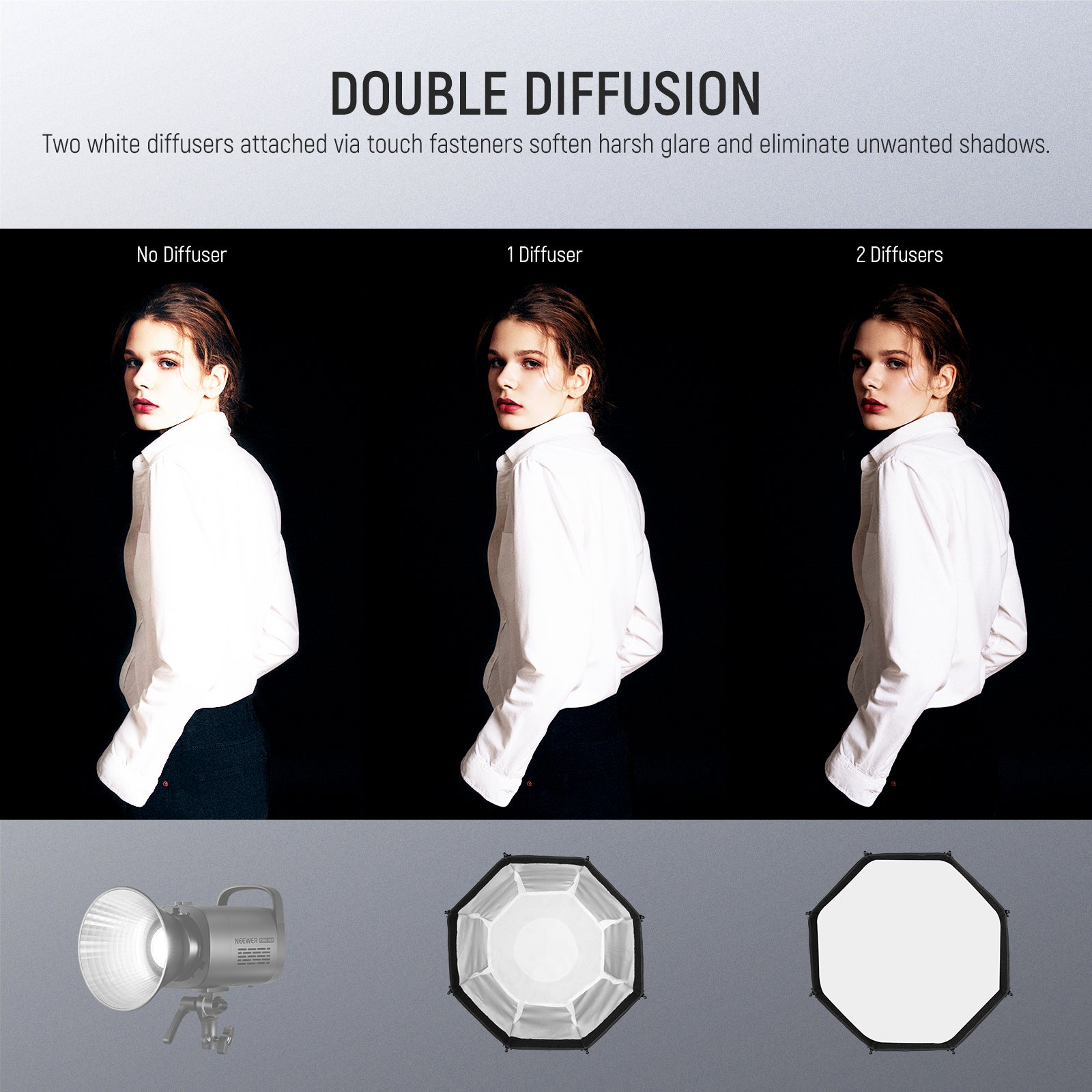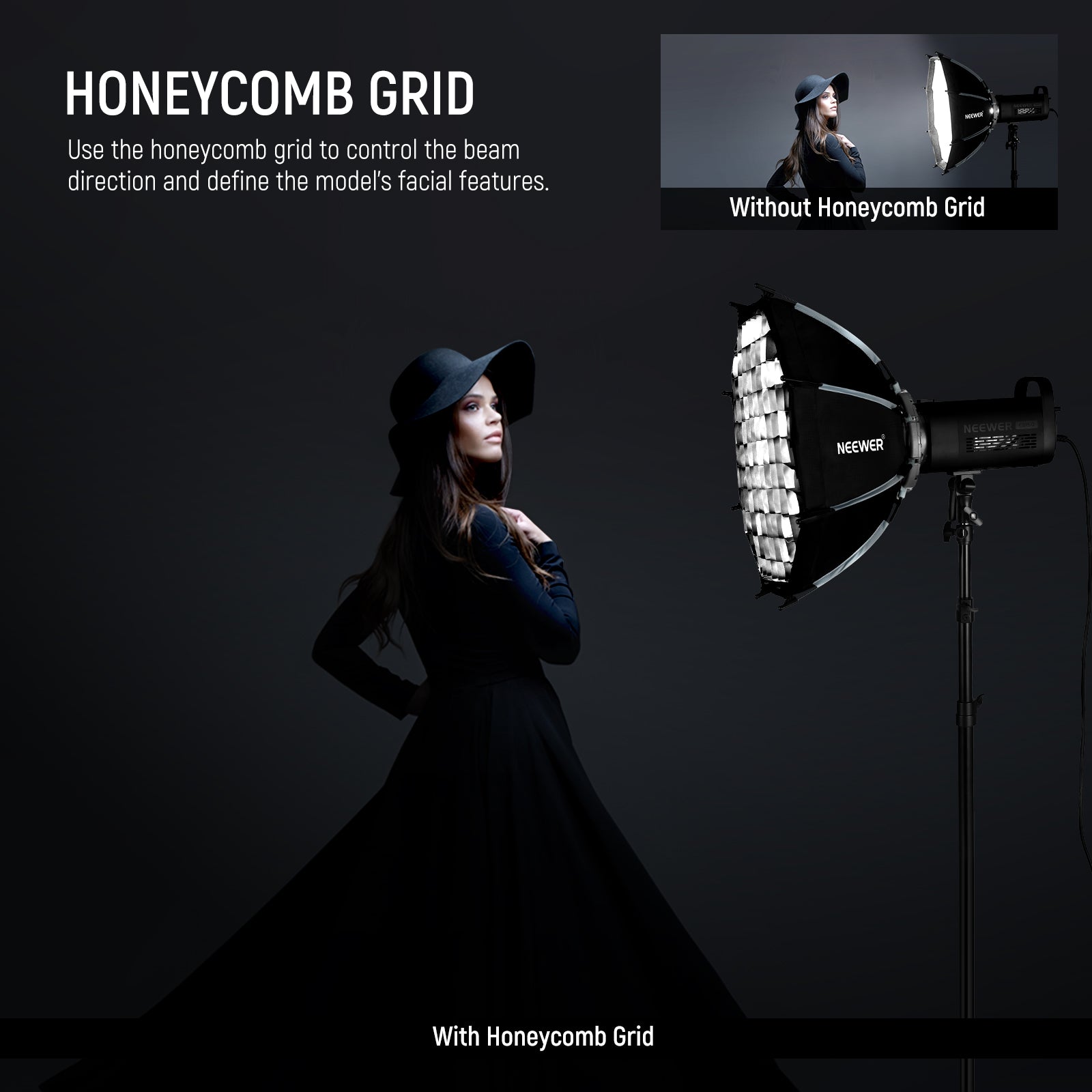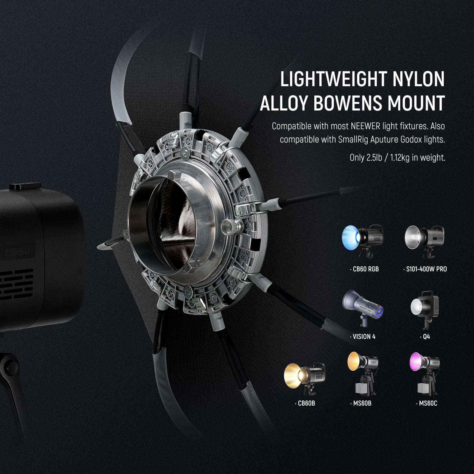 NEEWER offers various softboxes, including parabolic, octagonal, lantern, rectangular softboxes, etc. These softboxes feature a quick-release design and excellent portability. They can give you better even lighting and are perfect for shooting portraits or events such as weddings, proms, or corporate events on location. Choose a good softbox to elevate your photography to the next level.