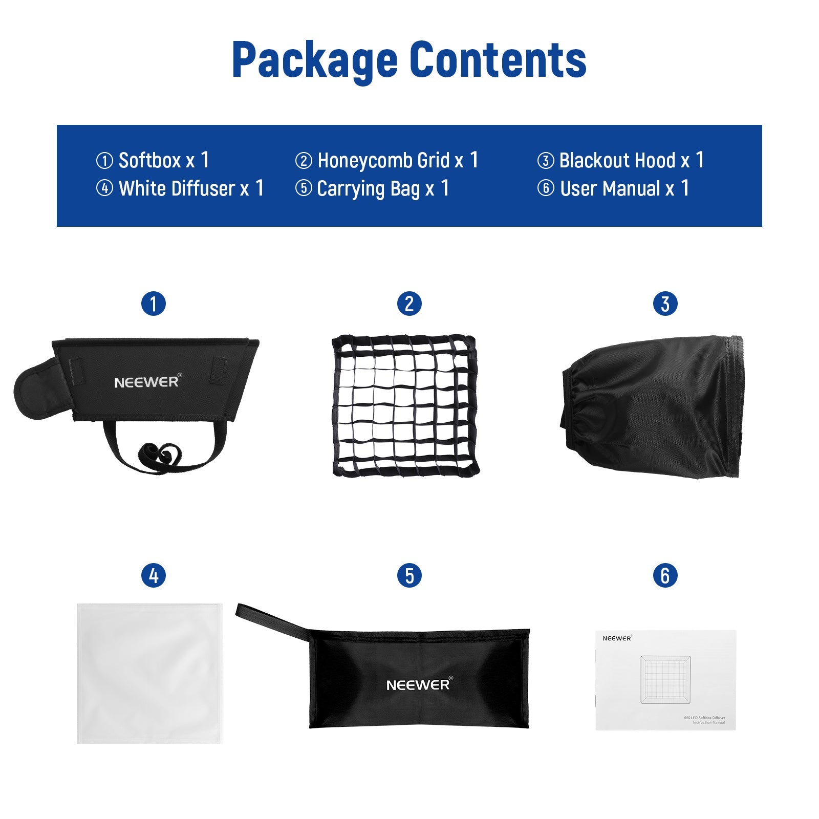 - Soft & Flat Lighting- Exclusively compatible with NEEWER NL660/NL660S/NL660-2.4G/SNL660/RGB660/SNL530 LED/RGB660 Pro/RGB660 PRO II video lights, the softbox with diffuser panel can create a soft and evenly distributed light output for portraits, product photography, and YouTube videos