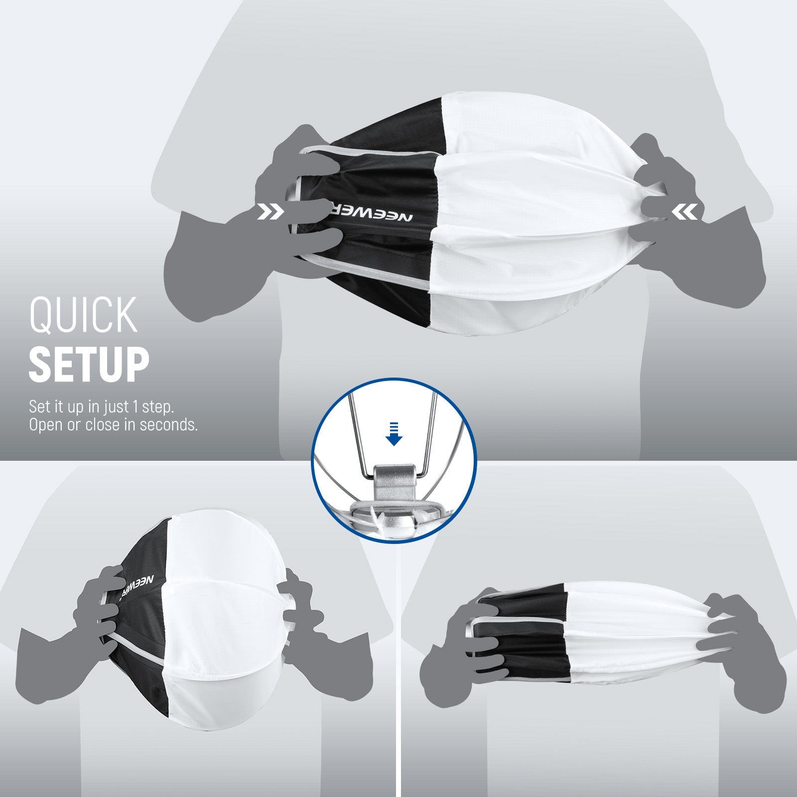 - One Step Quick Release & Fold- Designed with an integrated structure, the softbox allows for instant opening and closing with just one simple step, more convenient and efficient than the traditional versions, ensuring seamless lighting control at your fingertips and saving you time and effort