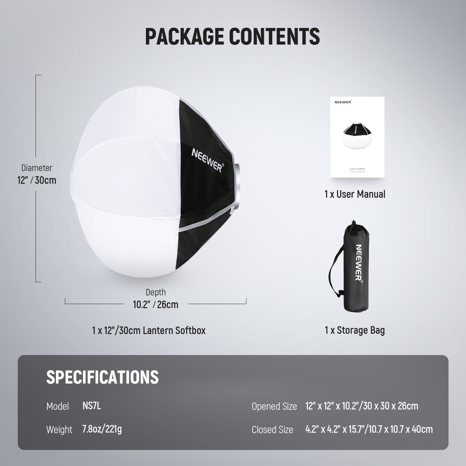 NEEWER NS7L 12"/30cm Lantern Softbox for HS60B LED Video Light