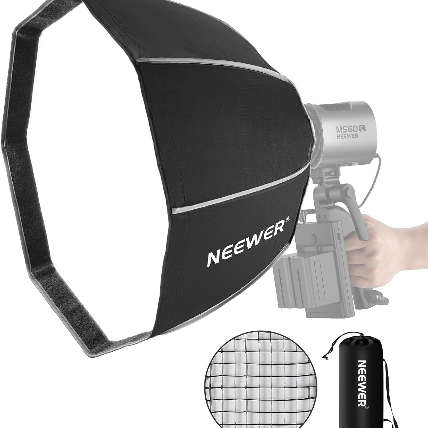 NEEWER offers various softboxes, including parabolic, octagonal, lantern, rectangular softboxes, etc. These softboxes feature a quick-release design and excellent portability. They can give you better even lighting and are perfect for shooting portraits or events such as weddings, proms, or corporate events on location. Choose a good softbox to elevate your photography to the next level.