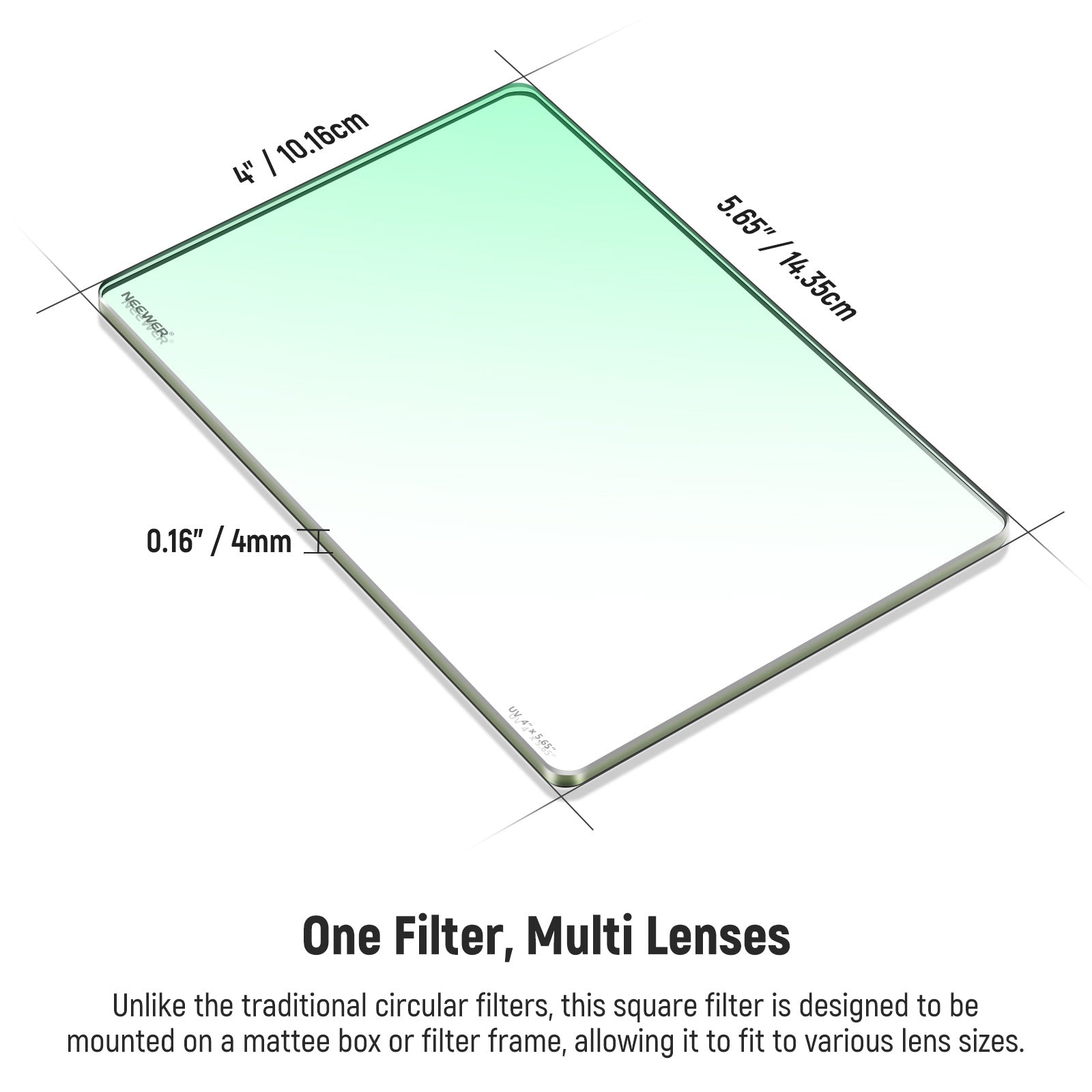 • Square UV Filter for Matte Box- Compatible with Tilta SmallRig Matte Box, Mini Matte Box, and Filter Frame. Use the NEEWER square UV filter to block ultraviolet rays and eliminate the bluish cast in images