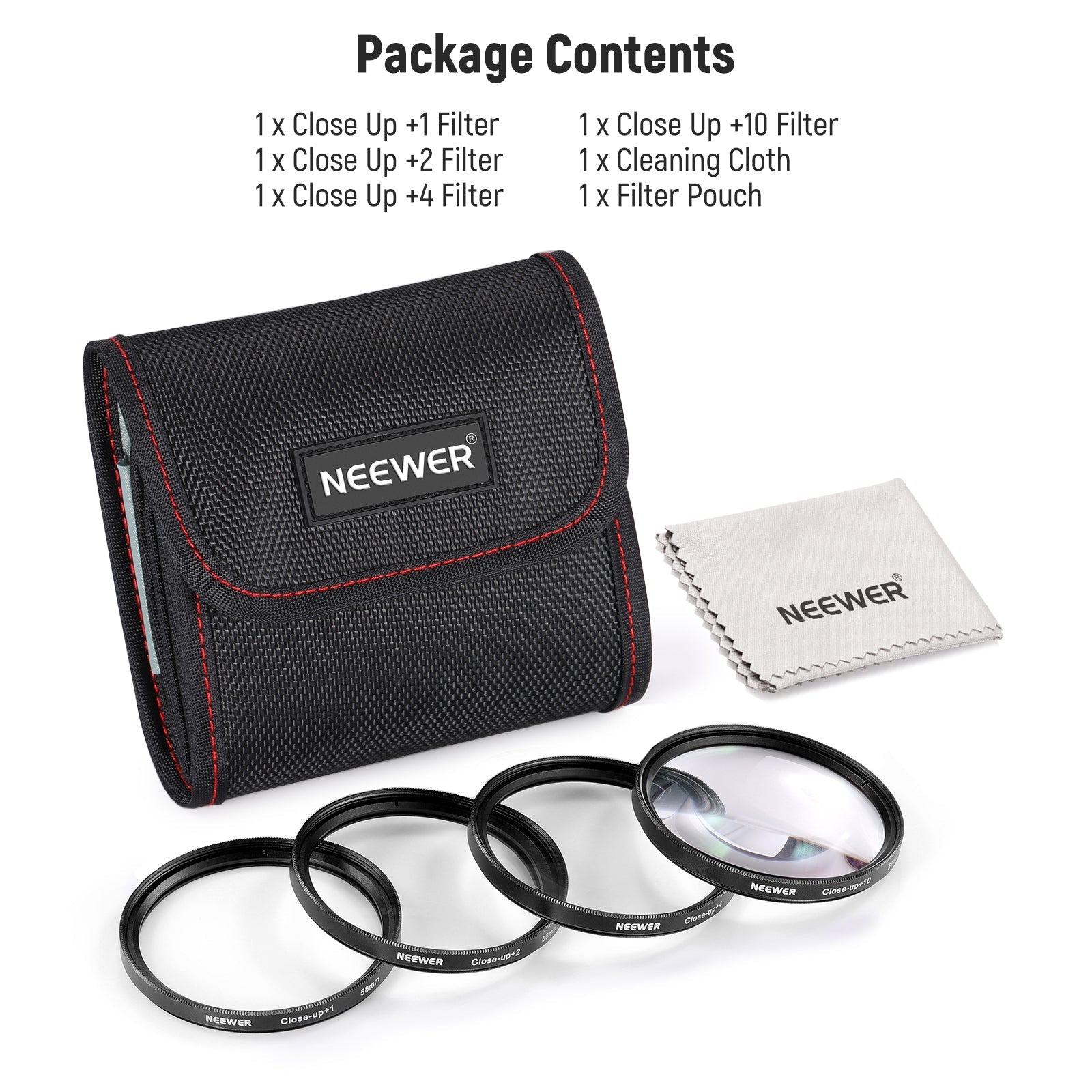 NEEWER 58mm Macro Close Up Lens Filter Kit (+1, 2, 4, 10)