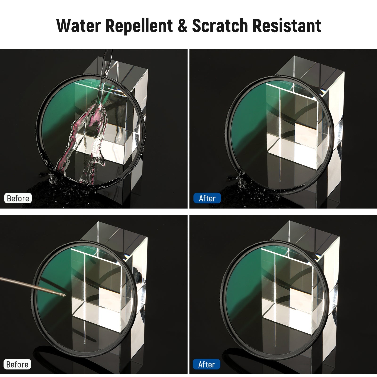 - Double Sided Nano Coatings- 30 layers of nano coatings on both sides protect the HD optical filter glass against scratches, fingerprints, smudges, and dust while retaining the clarity for sharp and detailed photographs