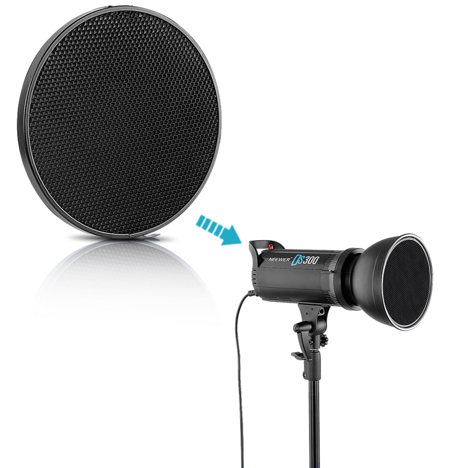 - 7" standard reflector with 10 30 50 degrees honeycomb grid for Bowens mount studio light strobe.