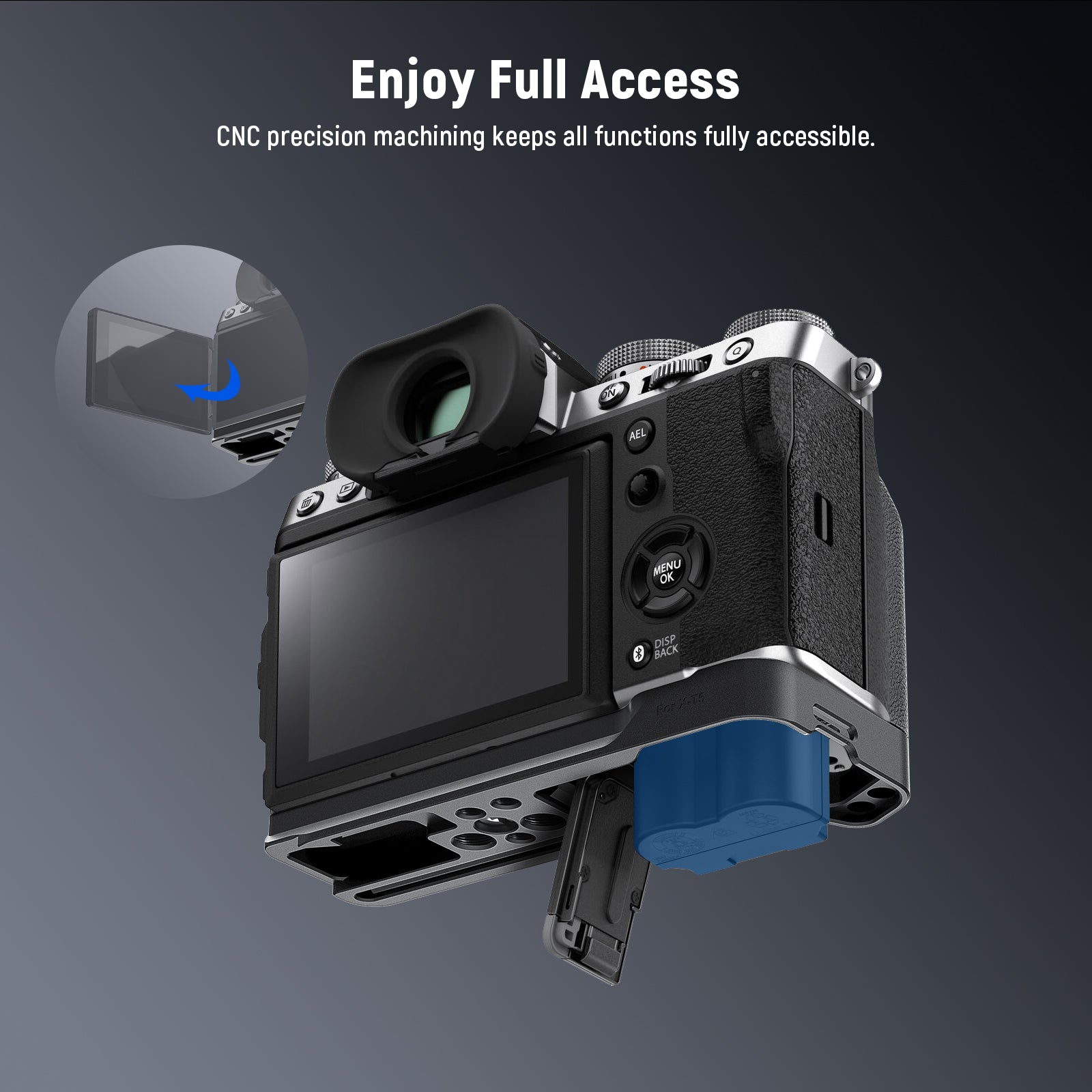 • Compatible with Fujifilm X-T5- Compatible with Fujifilm X-T5 camera. This formfitting L bracket handgrip weighs only 3.4oz (97g) and adds no bulks to the camera. It keeps all ports, buttons, the battery compartment, and the articulated LCD screen completely accessible. The silicone grip with faux leather texture brings both comfort and aesthetics. Also equipped with an extra shutter button for convenient use
