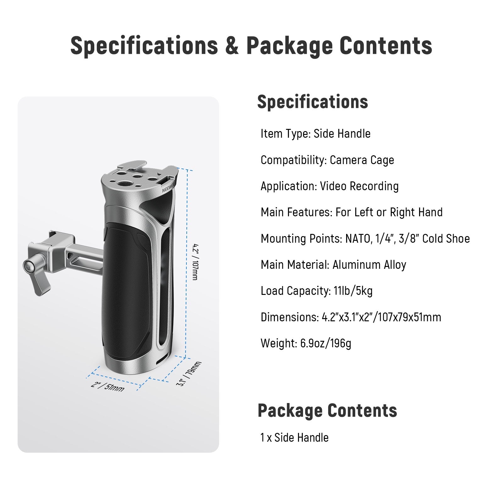 NEEWER CA125 Aluminum Alloy Side Handle with NATO Clamp