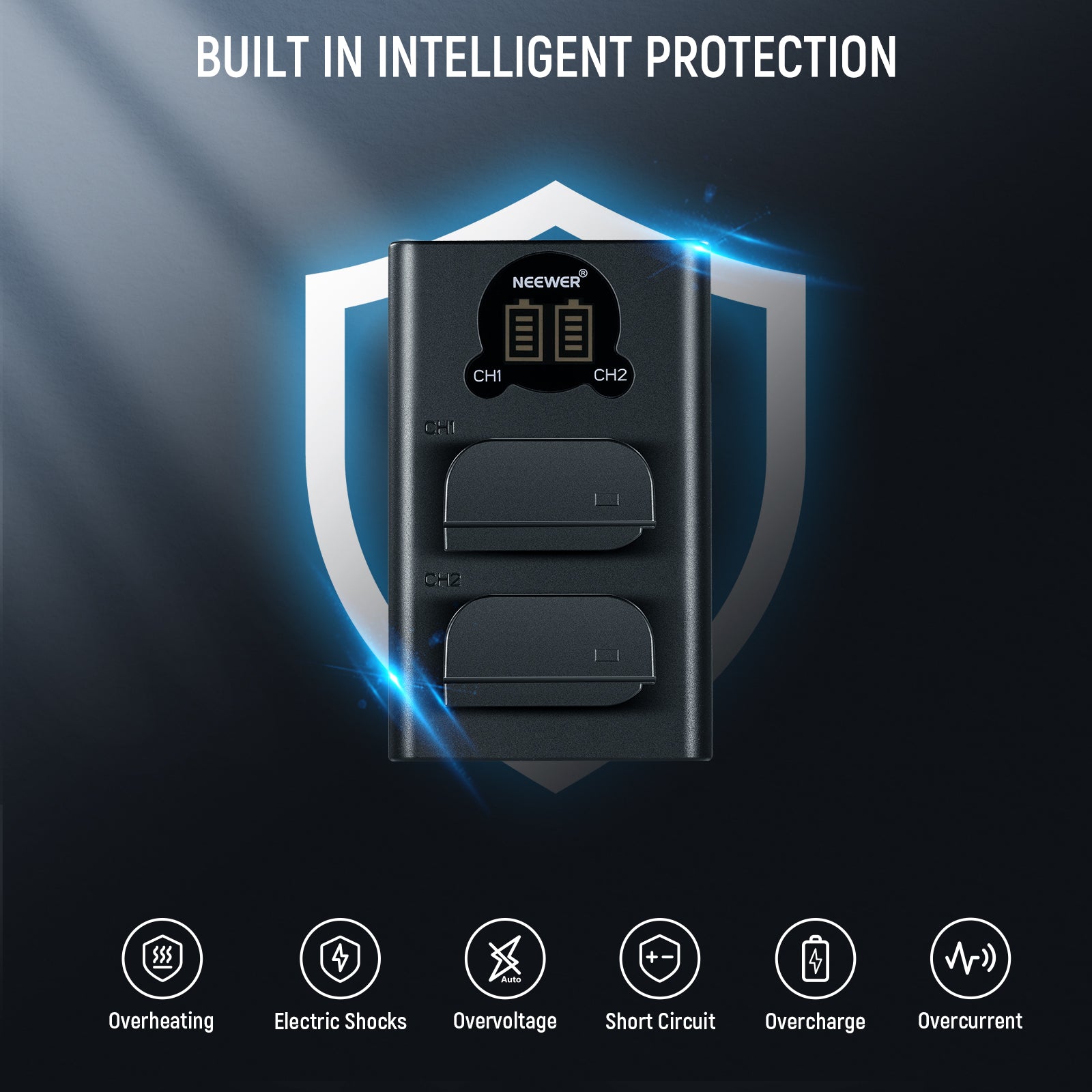 - Fully Decoded Batteries- Fully decoded batteries make sure the battery percentage will appear on the camera's LCD screen, and no warning alerts will pop up. The LCD screen on the battery charger will also show each battery's charging status in real time