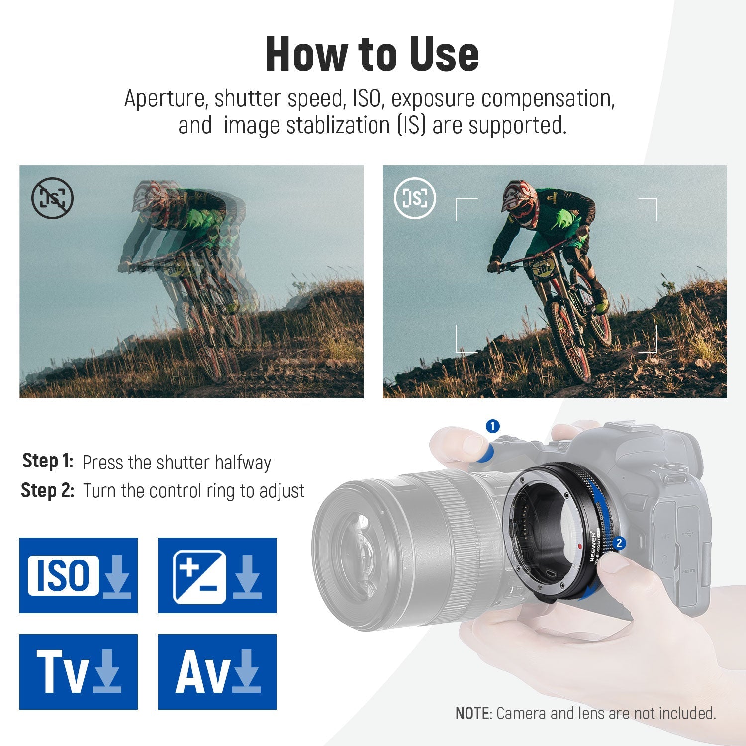 - Uncompromised Functions- Equipped with electrical contacts, the lens adapter retains autofocus and image stabilization capacities in your lens and keeps complete EXIF data from your camera