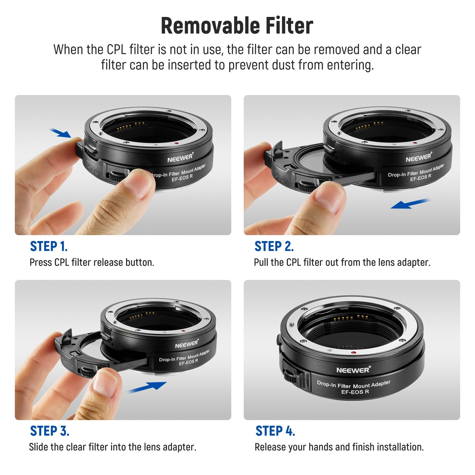 NEEWER EF to EOS R Lens Mount Adapter with Drop in CPL Filter & Caps