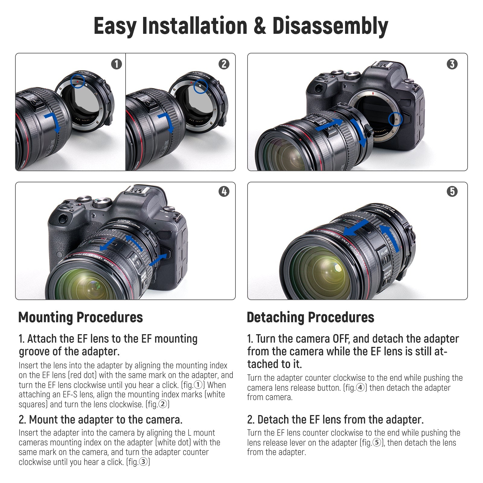 • Widely Compatible EF-RF Lens Adapter- NEEWER EF to RF lens adapter ring is designed to mount any EF or EF-S lens on your EOS R camera, compatible with Canon EOS R EOS Ra EOS RP EOS R5 EOS R6 EOS R3 EOS C70 R5C R7 R10 R6 II R8 R50 Camera