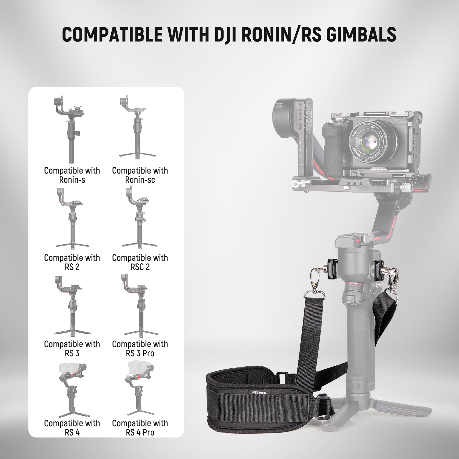 • Neck Shoulder Strap with NATO Rails- This gimbal neck strap kit is compatible with DJI RS4 RS4 Pro RS3 Pro RS3 RS2 RSC2 Ronin S Ronin SC handheld stabilizers. Directly attach the two mini quick release NATO rails to the built in NATO ports of RS4/RS4 Pro/RS 3/RS3 Pro/RS 2/RSC 2, or the Ronin Series Accessories (RSA) Ports of Ronin S and Ronin SC before connecting the neck strap