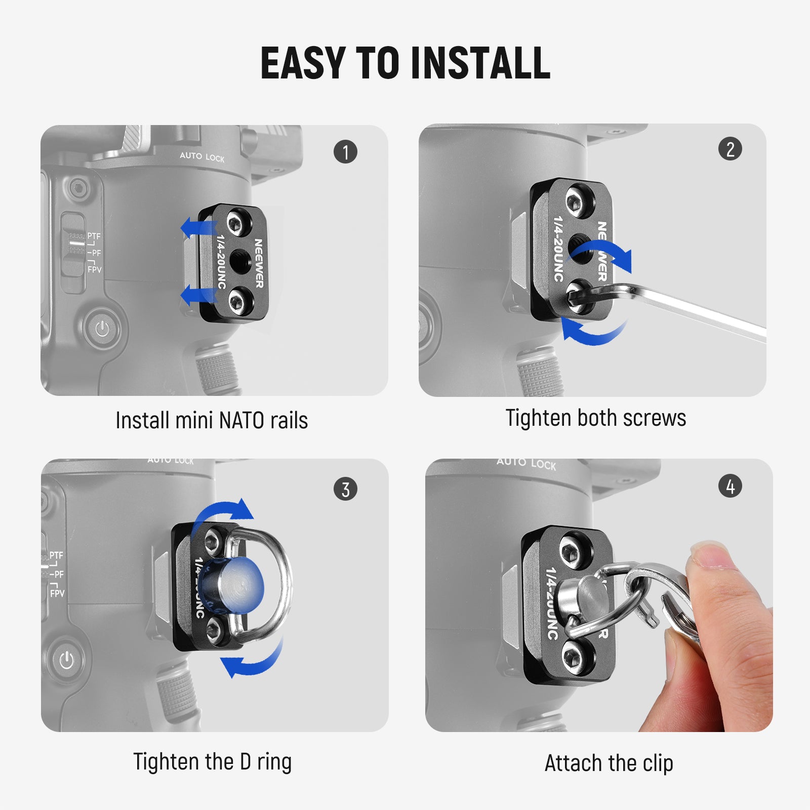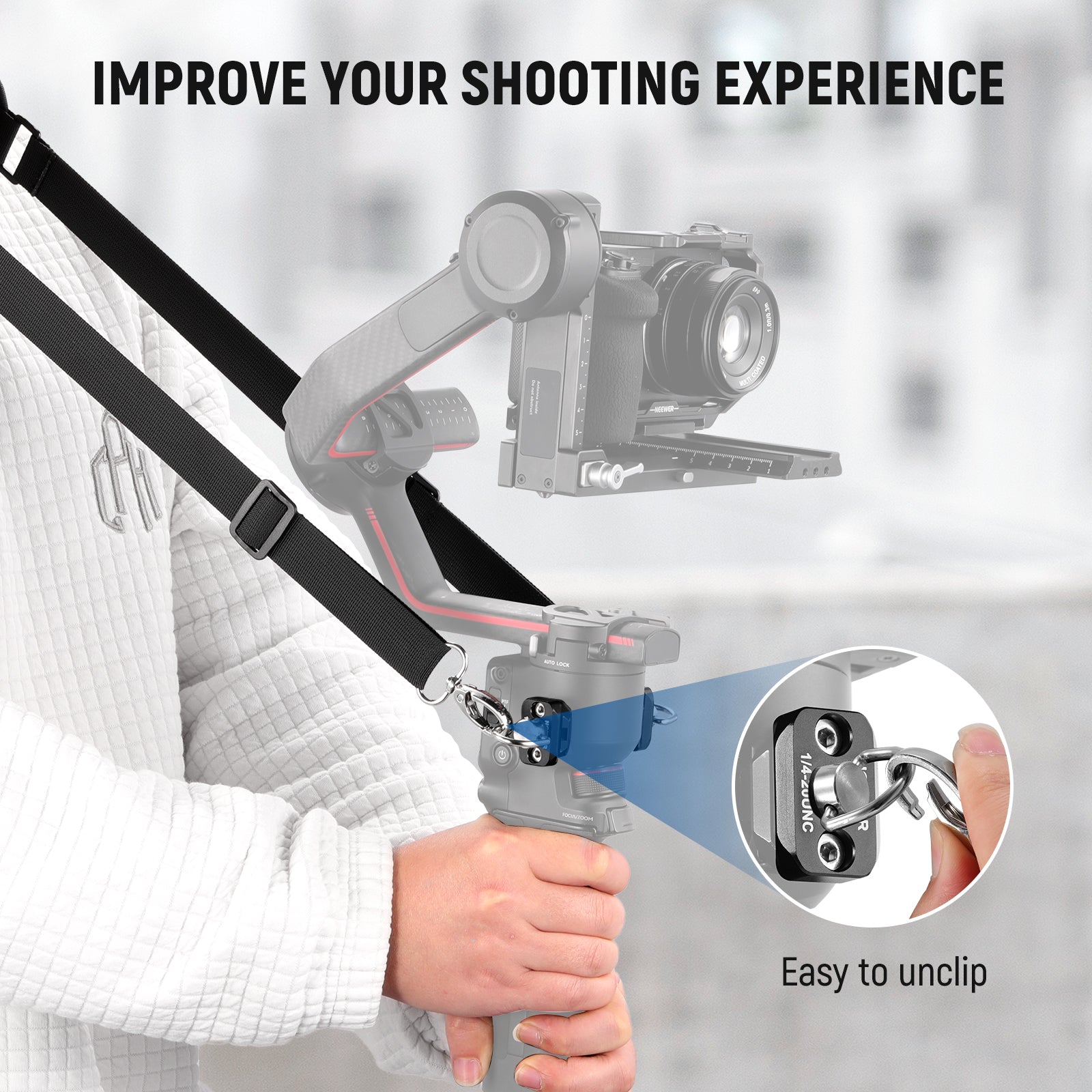 • Two 1/4" Screw D Ring Attachment- Securely connect the gimbal stabilizer shoulder neck strap to the mini NATO rails via the 1/4" screw D rings. You can also attach the D ring screws to our ST49 Sling Handle GA006 Dual Handgrip for added stability and easier operation. Also compatible with SmallRig stabilizer accessories