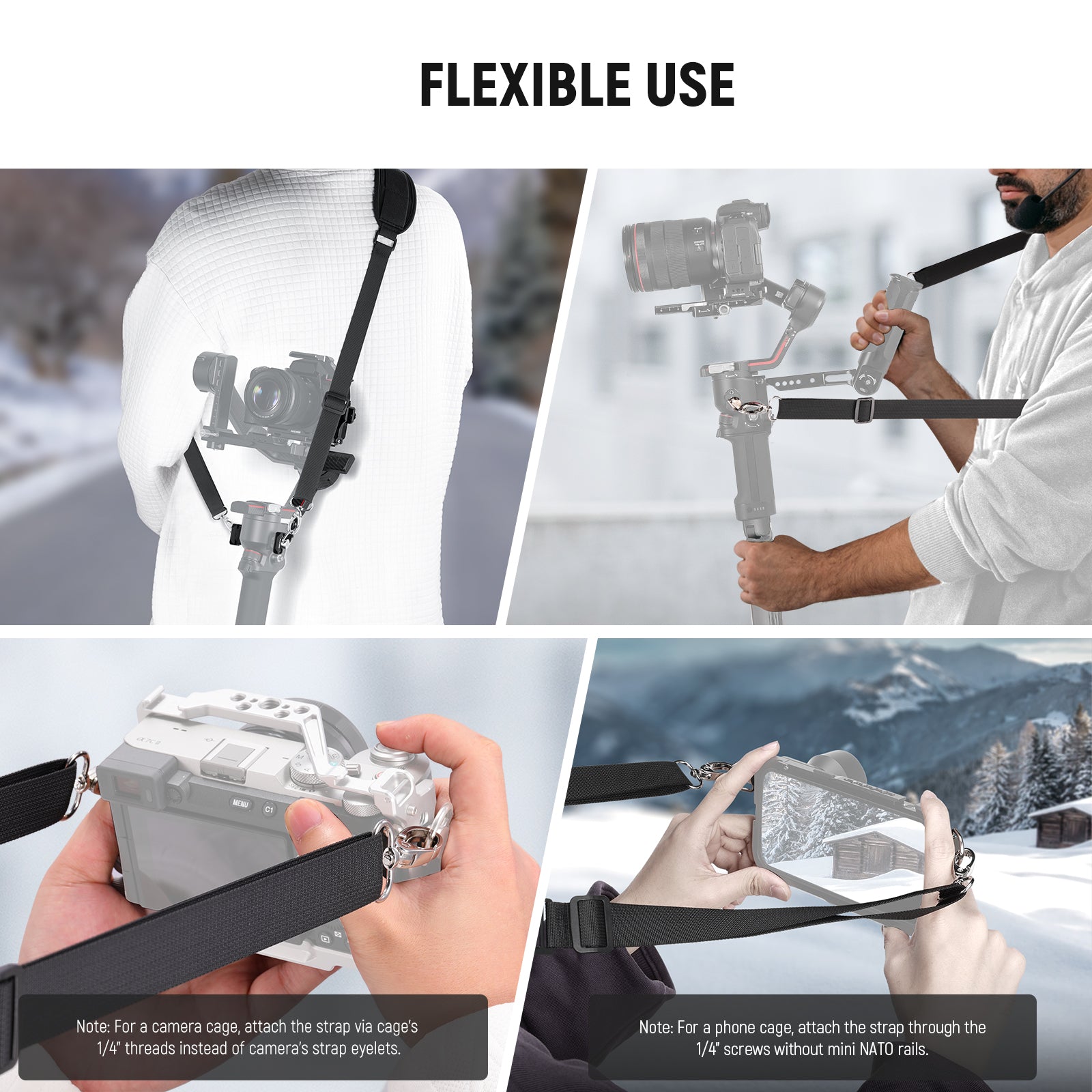 • Soft & Comfortable Neck Pad- The soft and breathable neck pad can evenly distribute the weight to avoid muscle stress and neck pain. Additionally, it increases stability and prevents the strap from slipping off when filming on the go