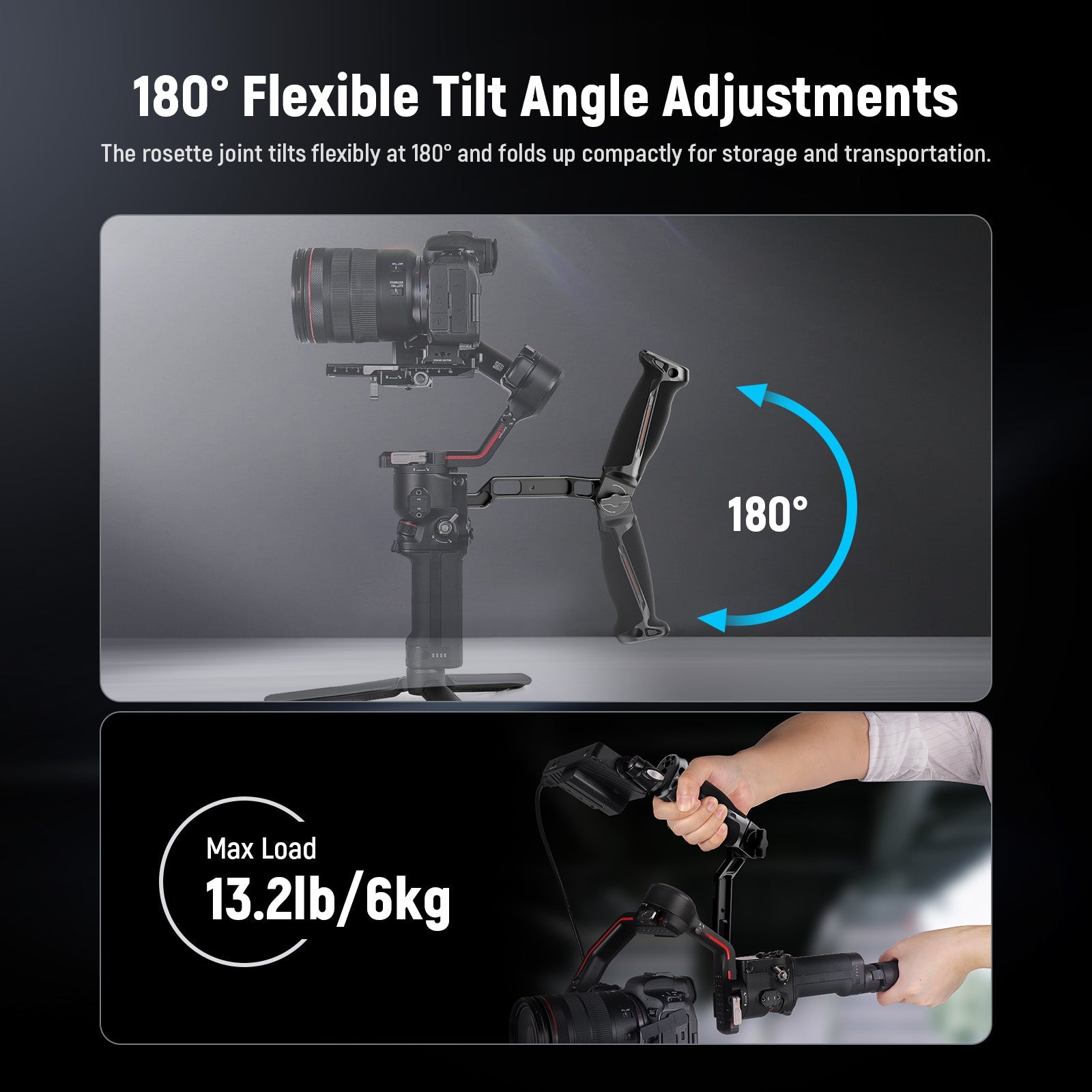 - 180° Flexible Tilt Angle Adjustments- The rosette joint tilts flexibly at 180° and folds up compactly for storage and transportation. With a robust build, the sling handle can support up to 22lb/10kg