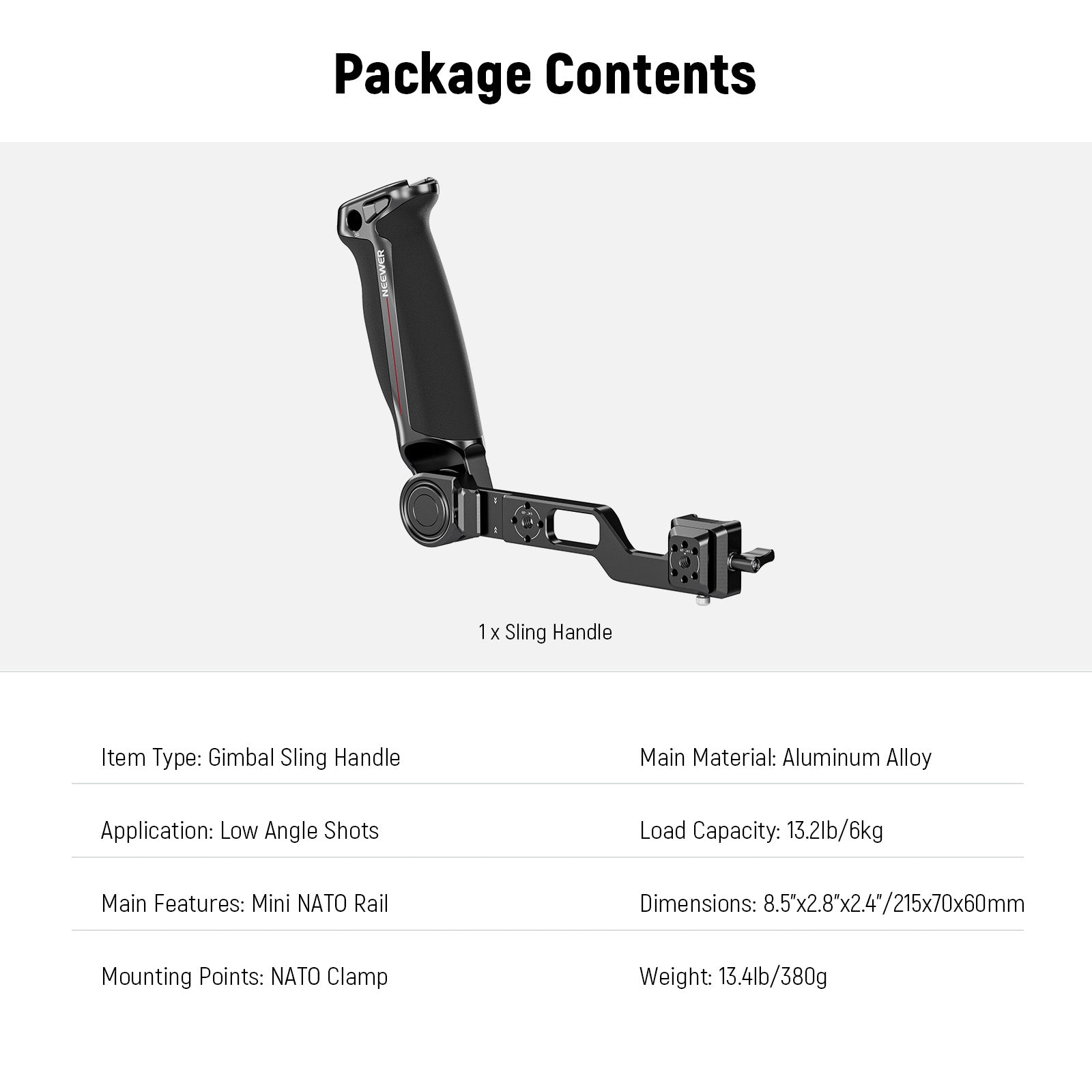 NEEWER GA020 Gimbal Sling Handle with NATO & QD for RS4 RS3 RS2 RS4 Pro RS3 Pro