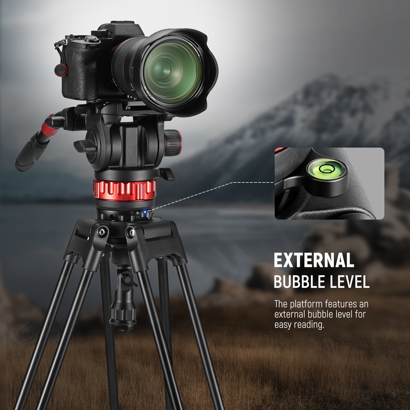 - Sandbag Hook & Bubble Leveler- A hook at the bottom of the handle allows you to hang sandbags for increased stability. A bubble level always help keep the camera in a horizontal position