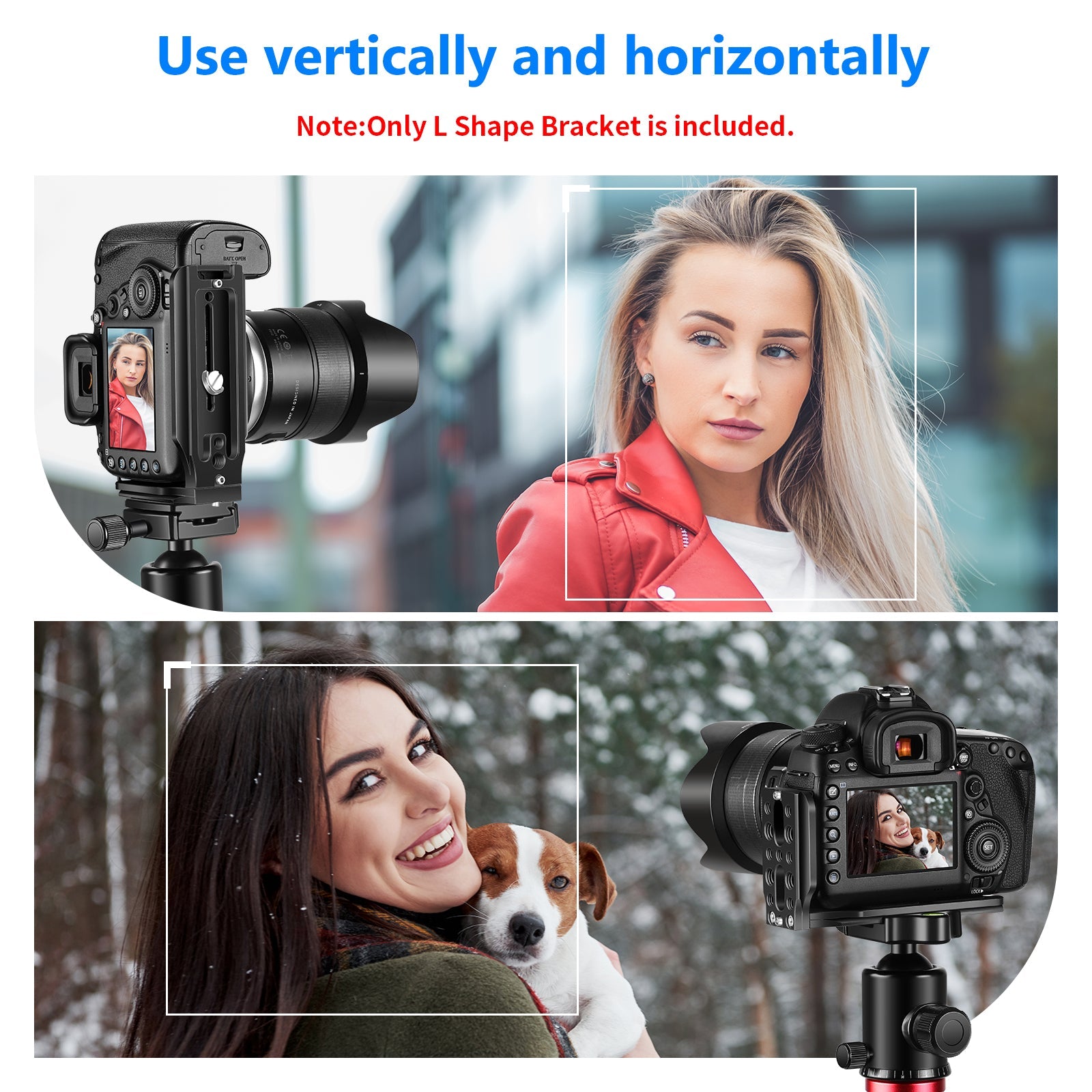 - COMPATIBILITY: There is a short Arca-Swiss standard screw-knob QR plate and a long L-shaped QR plate compatible with most of DSLR cameras with Arca-Swiss standard. With 1/4 screw, it can be used with camera models Nikon D7500/D800/D810/D750/D850/D700/D7000/D7100/D7200/D90/D3400/3300/5600/5300 Canon 450D/700D/750D/5D2/5D3/5D4/600D/70D/80D/800D Sony a9/a7iii/a7riiii//a7ii/a7rii/A7Sii/a6000/6300/6500 PANASONIC GH3/4/5, etc.