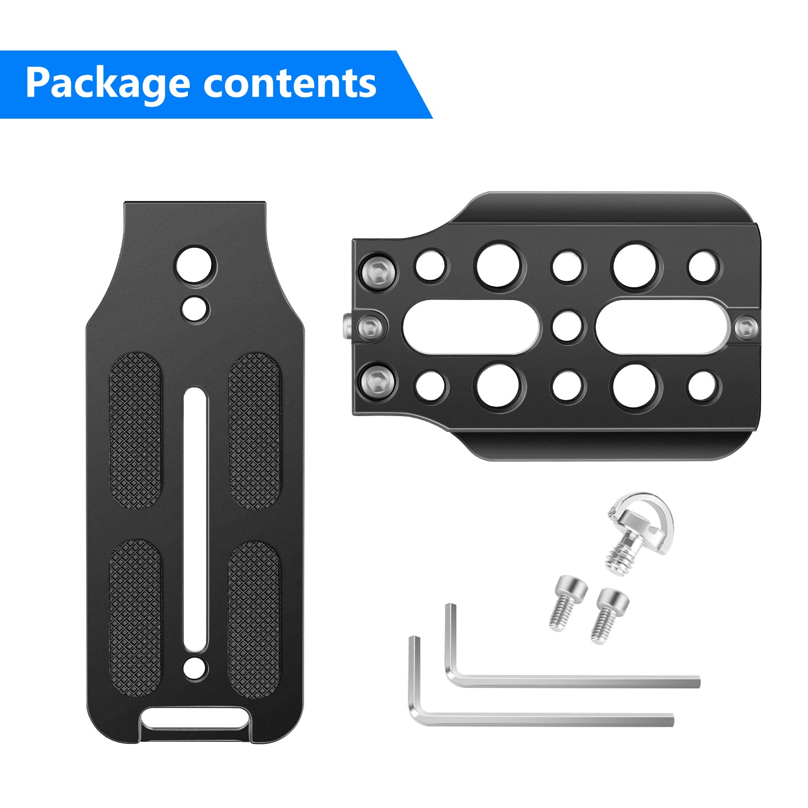 - STONG MATERIAL: Made of aviation aluminum alloy with highly-precise CNC technique, corrosion resistant and super durable, each side of the 2-piece plates equipped with an anti-slip nail that can work with the U-shaped grooves of the clamp and protect the camera