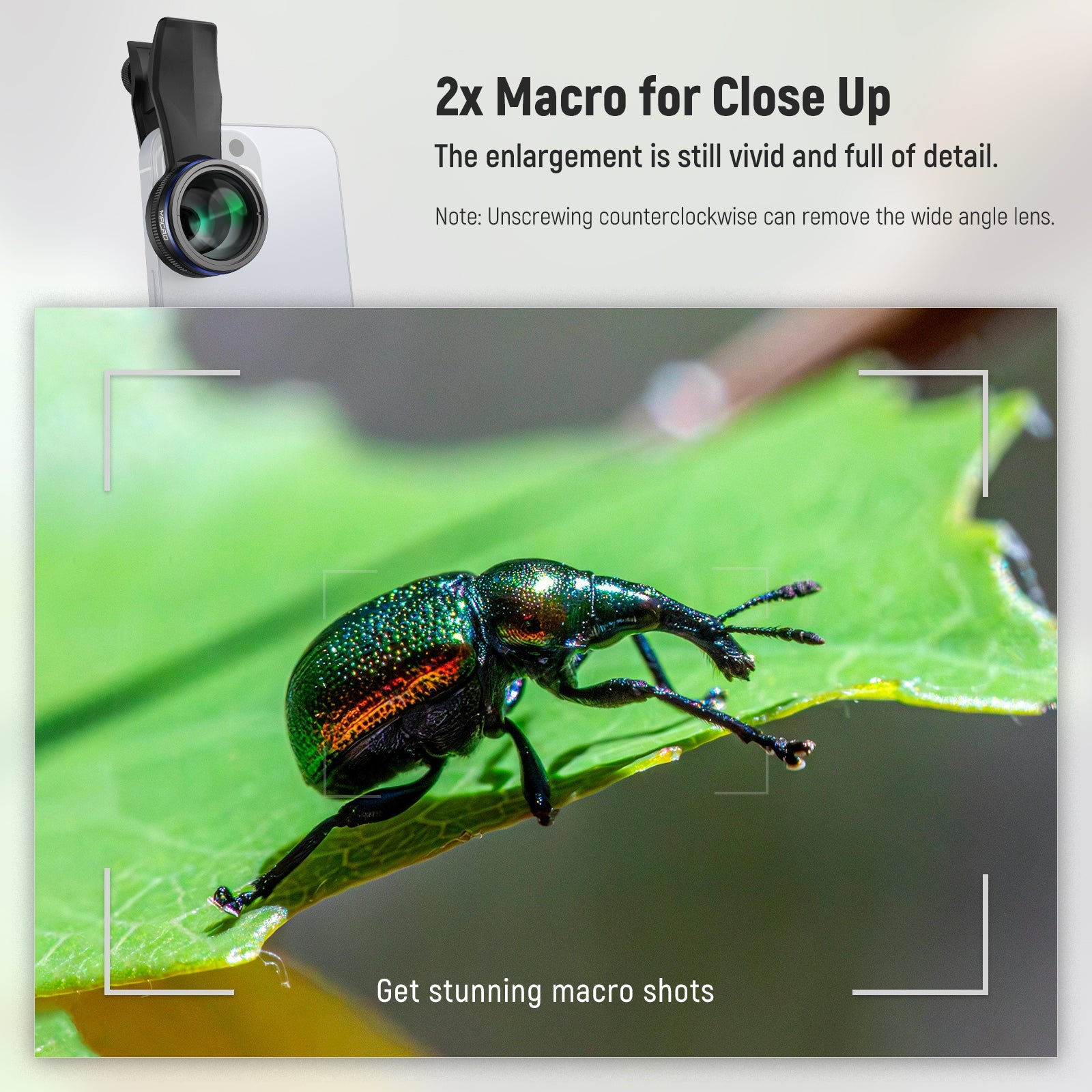 - Portable & Lightweight- Made of CNC machined, it is lightweight, sturdy and precise construction for seamless installation. Store this compact 2 in 1 add on lens in the included bag for easy portability, perfect for outdoor photography adventures