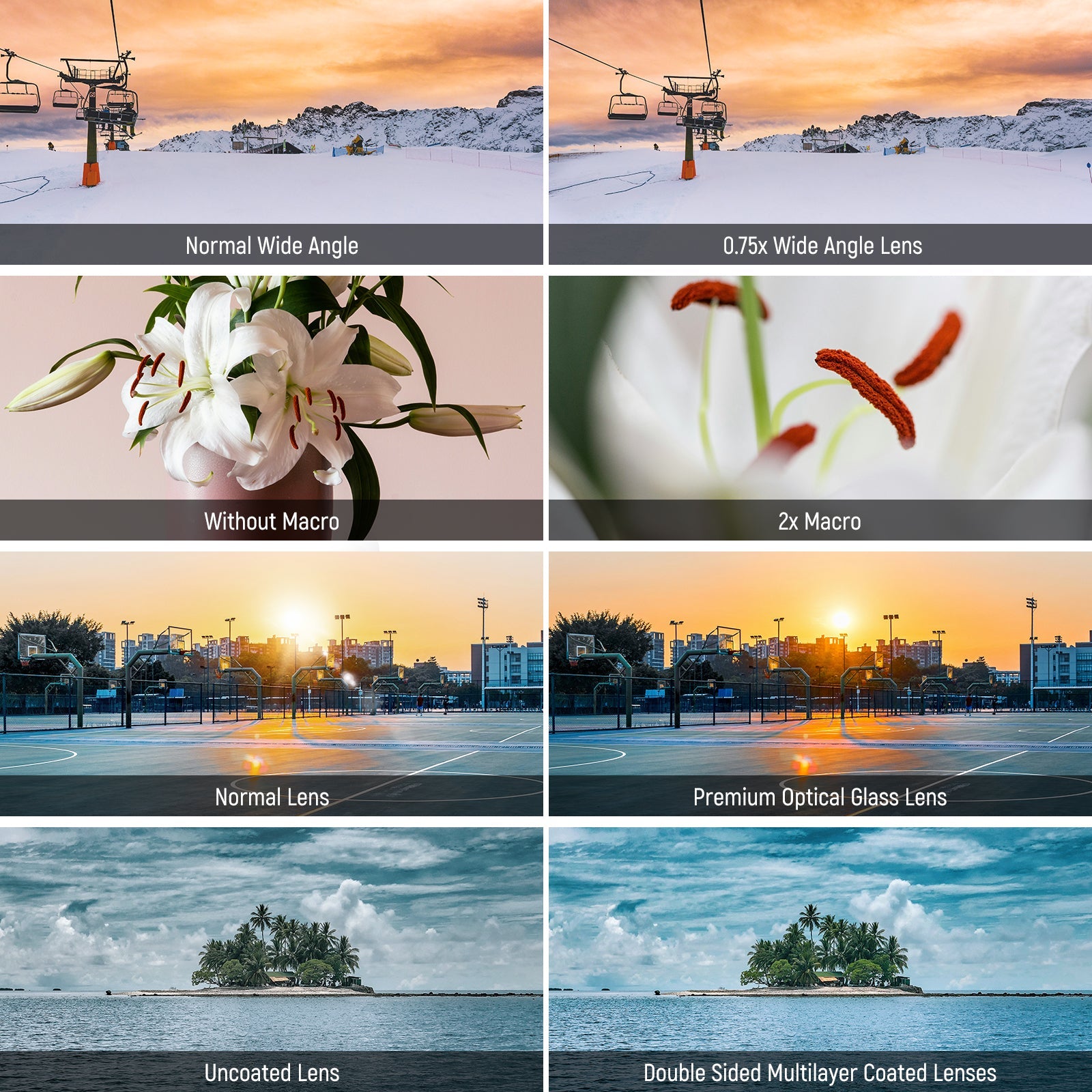 - Impressive 100° Field of View- Expand a larger 100° field of view at approximately 18mm equivalent focal length. The 0.75x wide angle lens allows you to capture a larger area and more subjects in the frame, ideal for photography of street, landscape, and architecture and group photos. Note: Use a wide angle lens with a macro lens for best performance