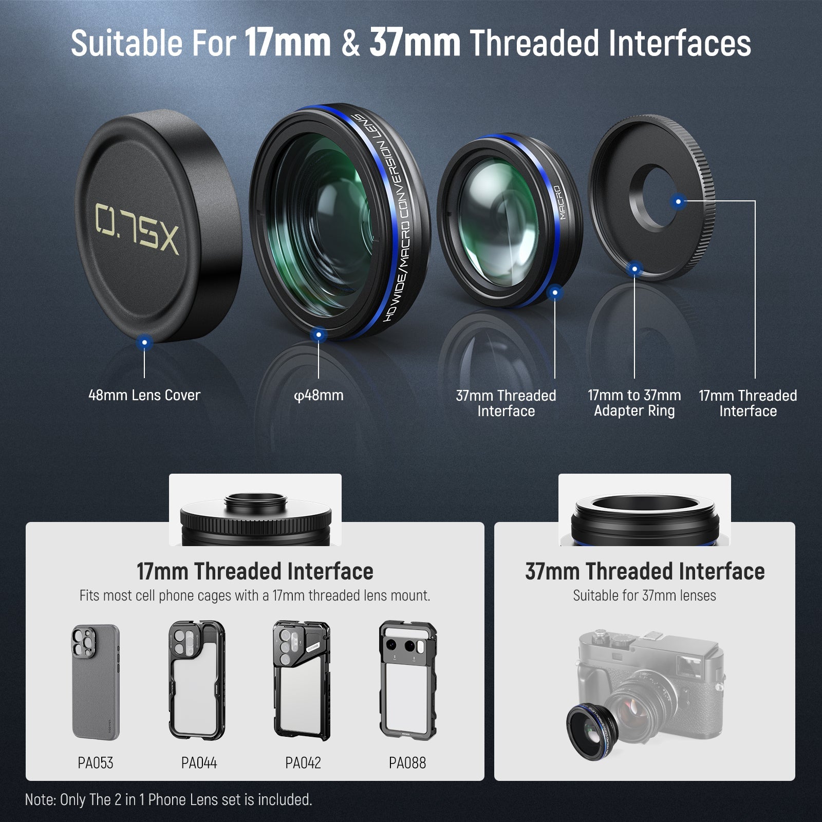 NEEWER LS-60 2 in 1 Wide Angle 2x Macro Lens with 17mm Thread & Adapter Rings