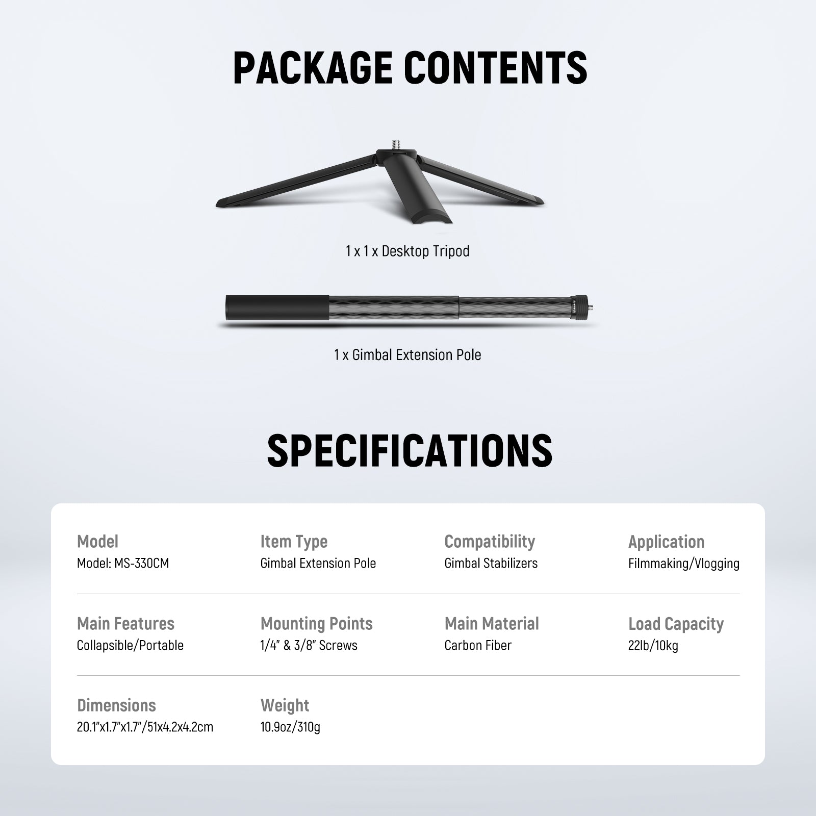 NEEWER MS-300CM Carbon Fiber Gimbal Extension Pole For DJI Ronin RS