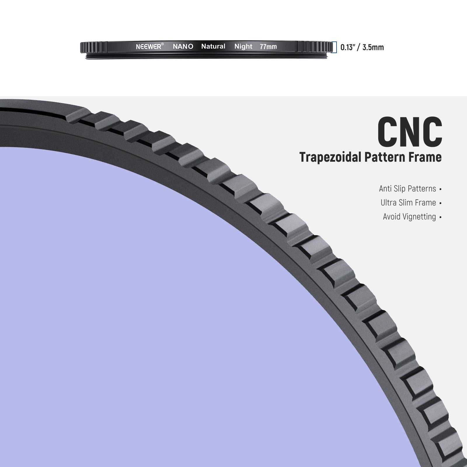 - Anti Reflective and Anti Fingerprint Coatings- The natural night filter is constructed with 28 layers of anti reflective and anti fingerprint coatings on both sides. Water repellent, scratch resistant, and oil proof, the filter offers great protection for your camera lens