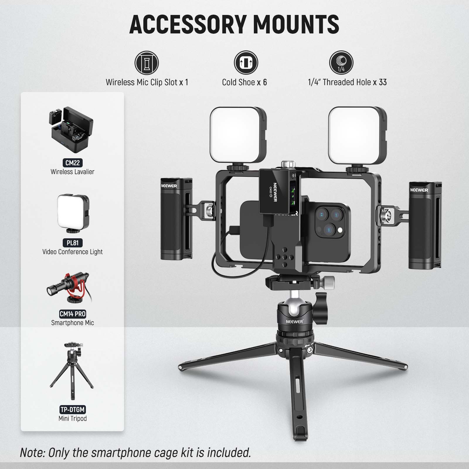 - Discover More From NEEWER- To maximize your creation, you can separately purchase the PA005E wireless control side grip with Bluetooth shutter, TP29 T30 mini tripod, CM28 wireless lavalier microphone, PL81/RGB62 LED video light, UA035 universal SSD holder, UA029 universal portable charger holder clamp mount, and other products from NEEWER