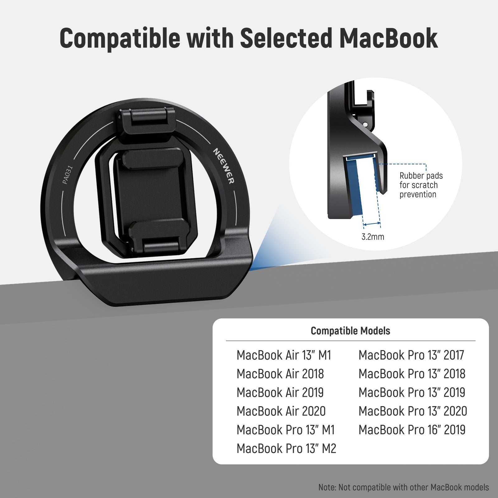 - Compatible with Selected MacBook- This continuity camera holder mount is only compatible with MacBook Air 13" M1, MacBook Air 2018-2020, MacBook Pro 13" M1/M2, MacBook Pro 13" 2017-2020, MacBook Pro 16" 2019. Rubber pads for scratch prevention. Note: Not compatible with other MacBook models
