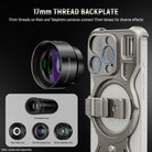 - Integrated 17mm Thread Backplate- The built in lens backplate features 17mm threads for Main Camera and Telephoto Camera, enabling you to mount 17mm phone lenses for creative photography and videography
