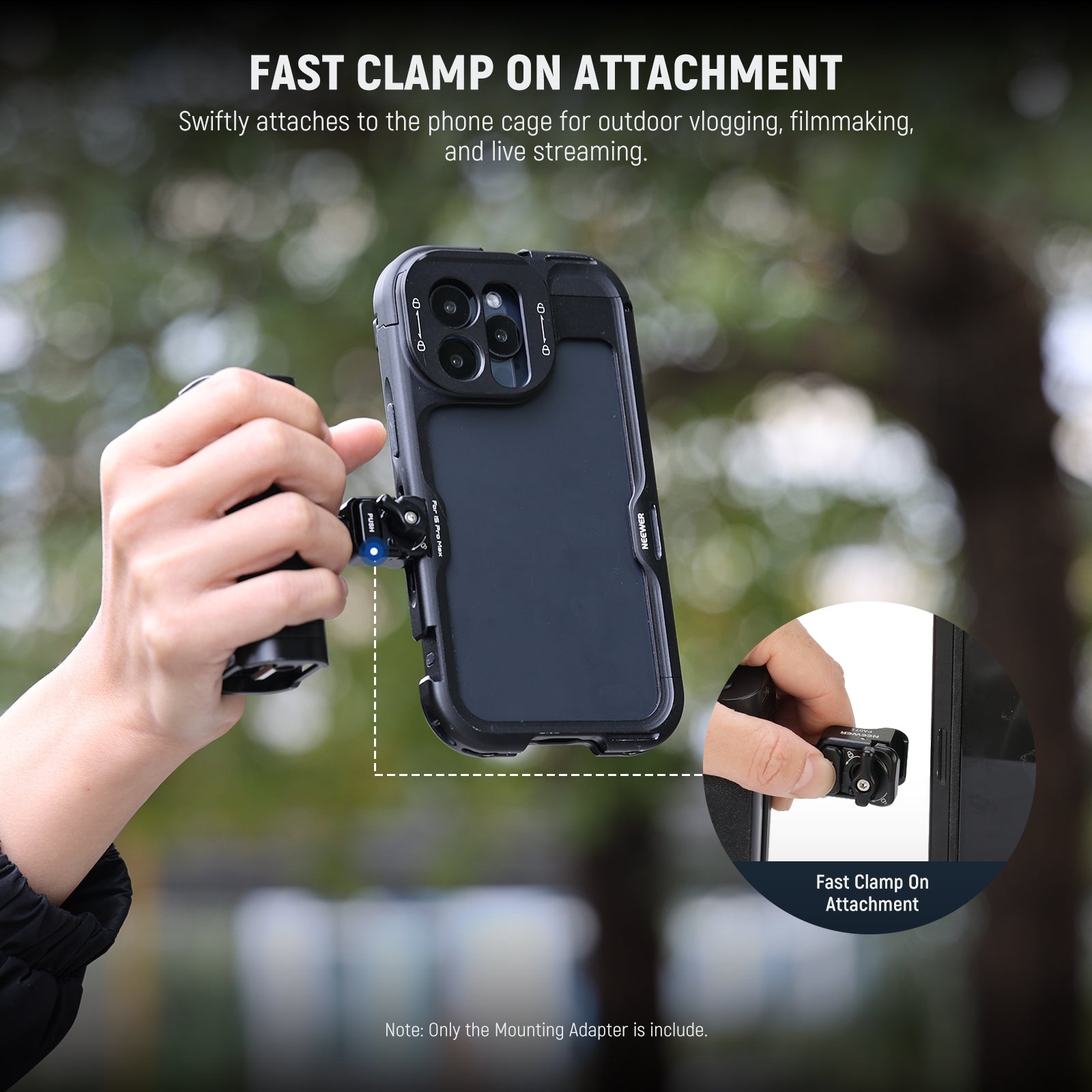 - Fast Clamp On Attachment- With the quick release clamp accessory, your side handle can swiftly attach to the phone cage and secures via the locking knob—perfect for outdoor video recording, filmmaking, filming, videography, vlogging, live streaming as content creator essential gear and influencer must have equipment, and mobile photography where time is at a premium