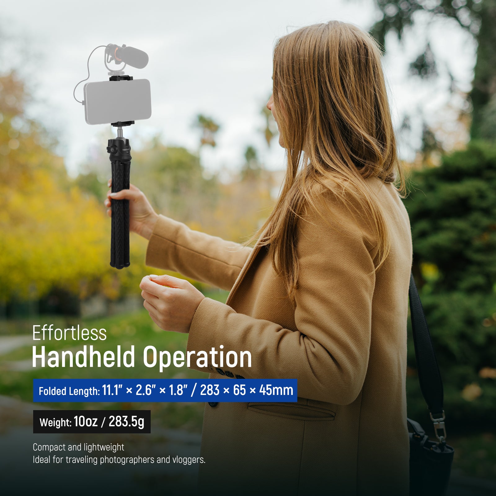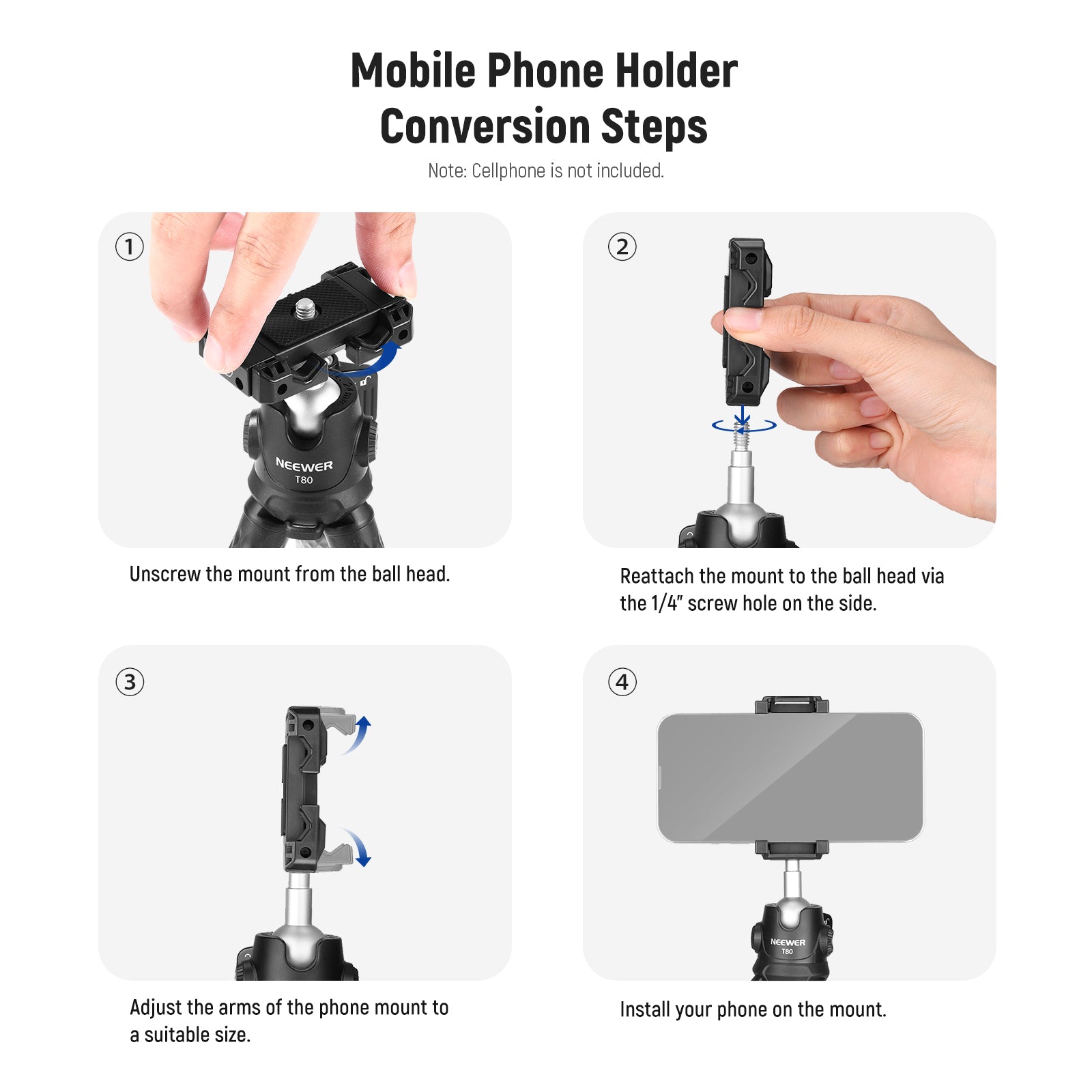 - The phone holder fits smartphones 2.2”–3.7” (65–95mm) wide. Mount a small LED light or a microphone on the cold shoe to improve your Zoom calls, selfies, live streams, and videos. Turn it into a rubber-padded plate for reliable camera mounting.