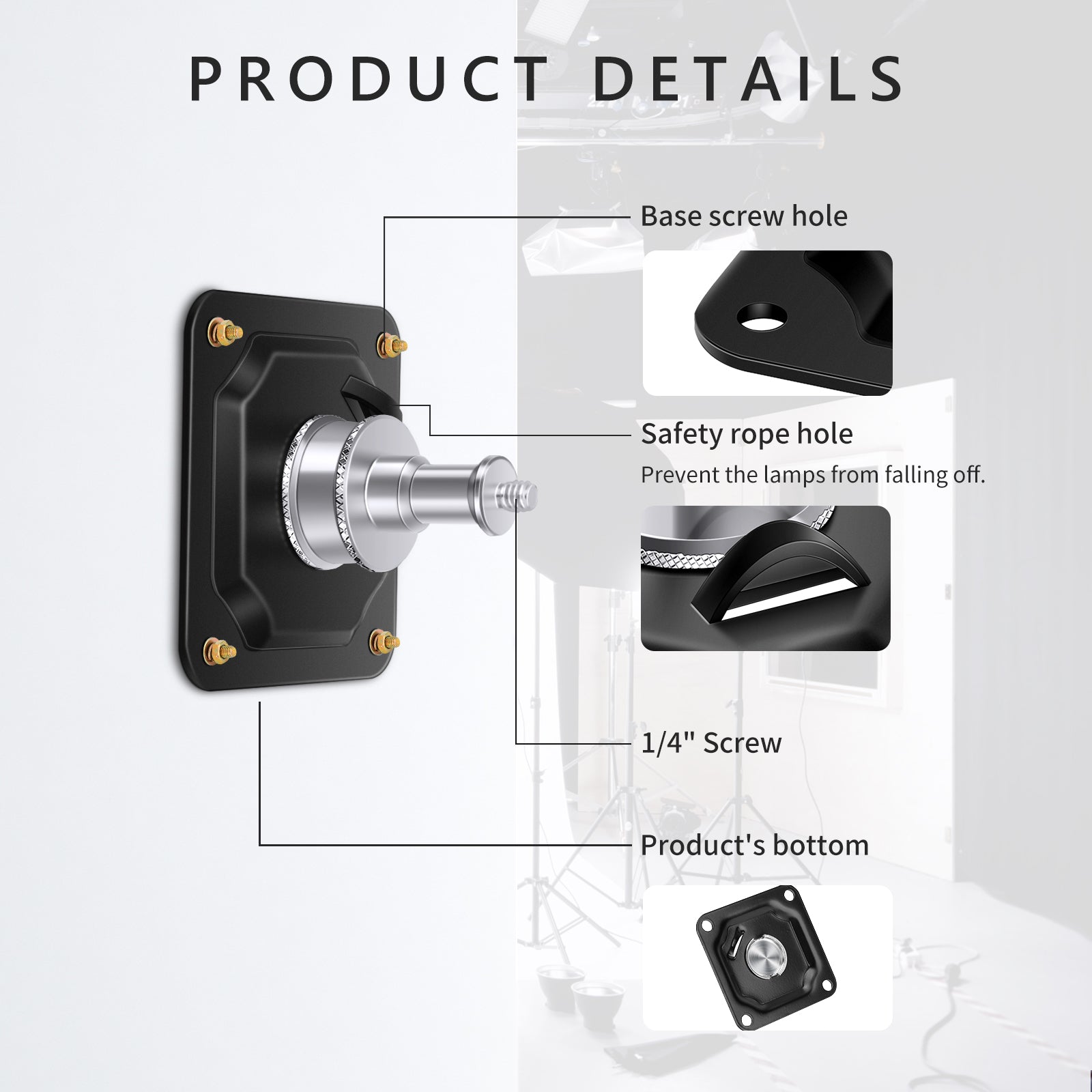 • 1 x wall ceiling mount 5/8 stud with 1/4 thread. 4 x screw