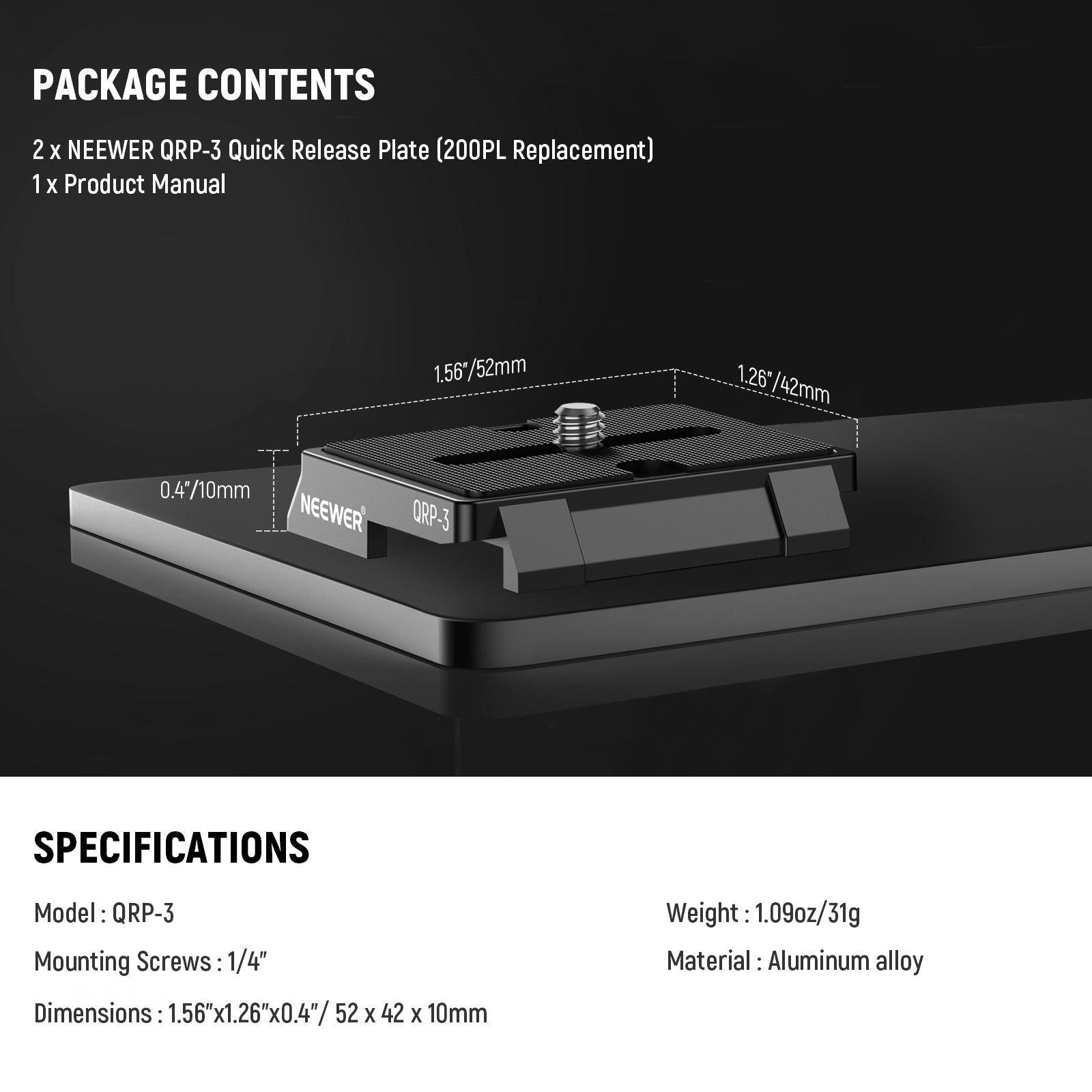 NEEWER QRP-3 2PCS 200PL Quick Release Plate Aluminum