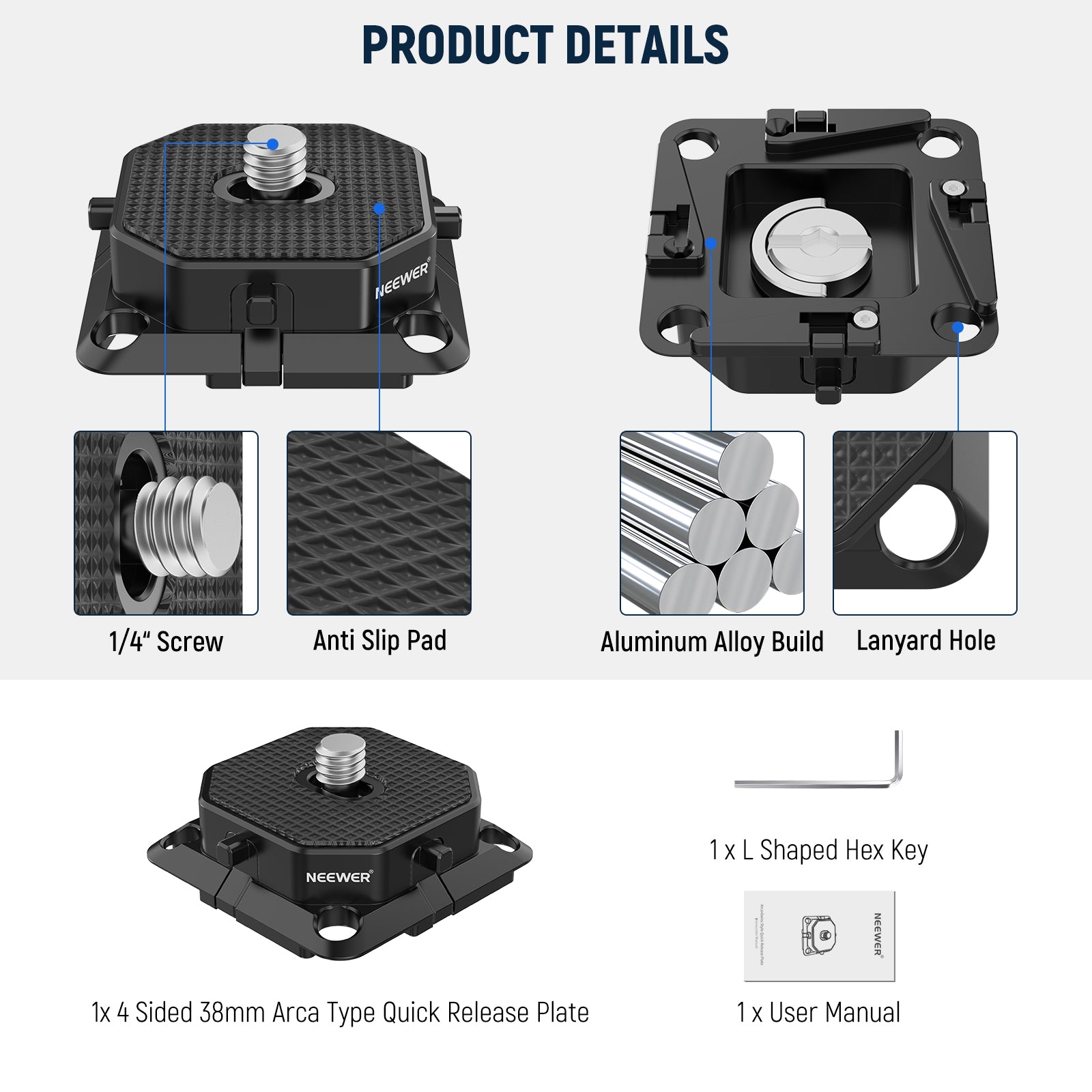 NEEWER QRP-4 Quick Release Plate With Four Side Arca Type Slots