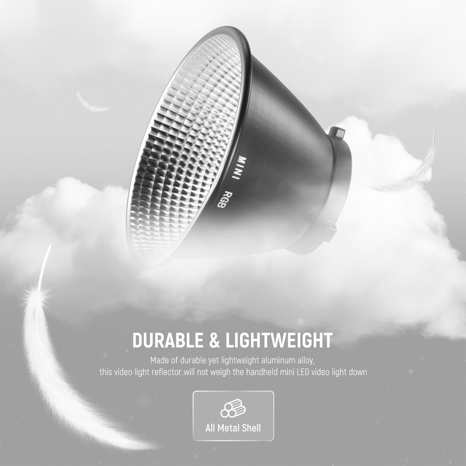 - Durable & Lightweight- Made of durable yet lightweight aluminum alloy, this video light reflector will not weigh the handheld mini LED video light down