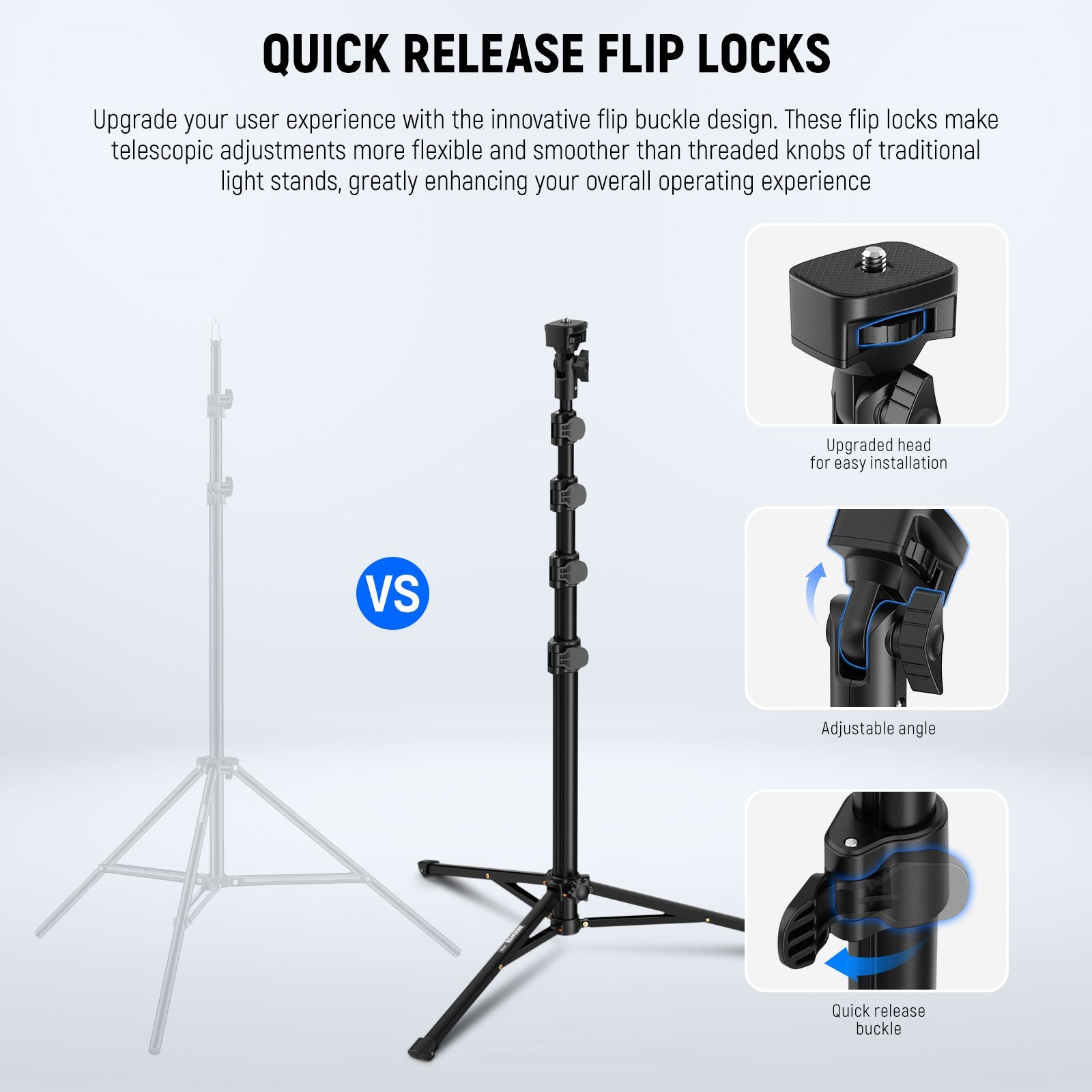 • QR Flip Locks & Easy Transportation- This photography tripod stand is easy to extend and collapse. It has a quick release flip buckle between each two sections to make easy telescopic adjustments. Designed for convenience, this phone mount stand shrinks to a mere 18.3"/46.6cm in length after folded, allowing for easy storage and transportation. Ideal for travel photographers and outdoor creators