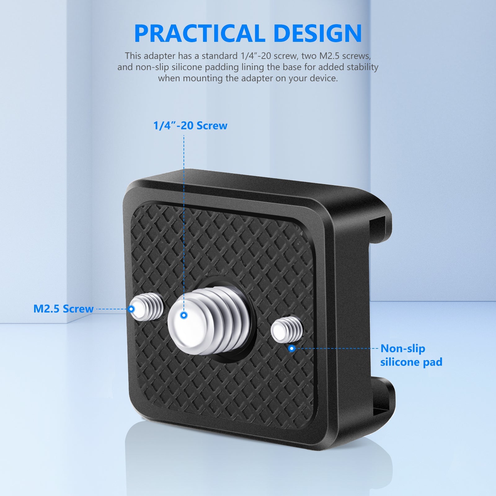 • Camera Cold Shoe Mounts feature one 1/4"-20 screw hole, two M2.5 screw holes, and bottom non-slip rubber padding for secure mounting on your compatible device.