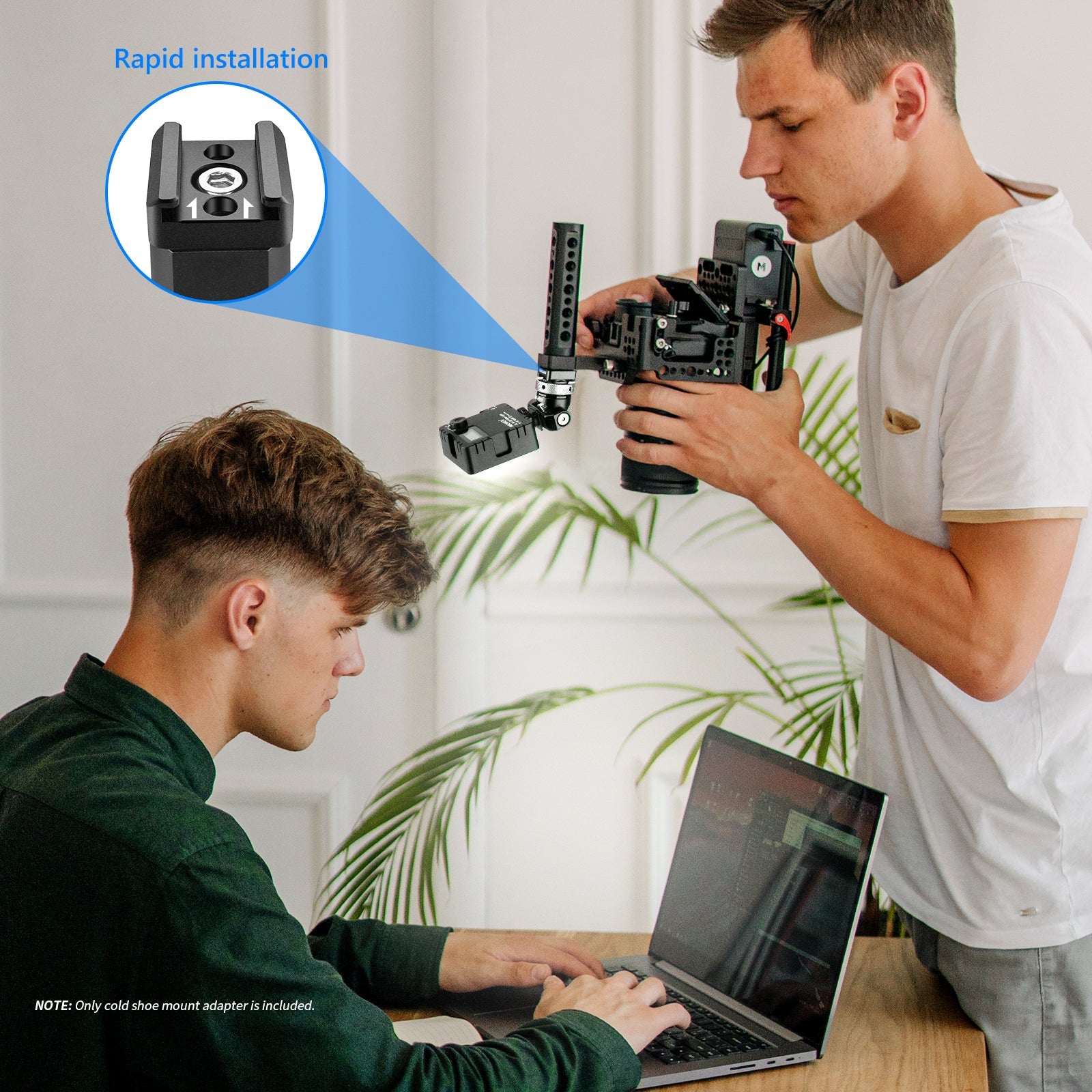 • The cold shoe mount allows you to attach more lights, microphones, or other accessories to adapt to any shooting scenario.